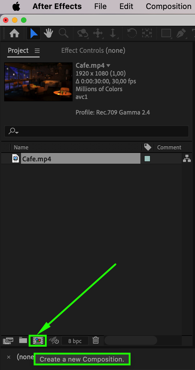 Next, create a new composition by clicking the “Create a New Composition” button in the Project panel. Set the desired settings, such as resolution, frame rate, and duration, and click “OK.” Make sure the composition settings match the requirements of your project.
