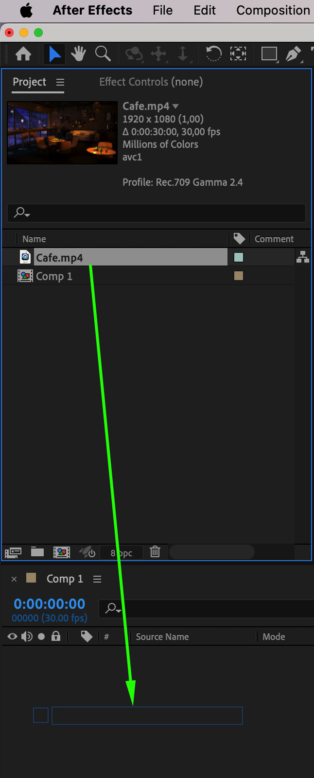 To begin, import your footage or animation into After Effects. You can do this by dragging and dropping the media file into the Project panel or using the File > Import > File menu.