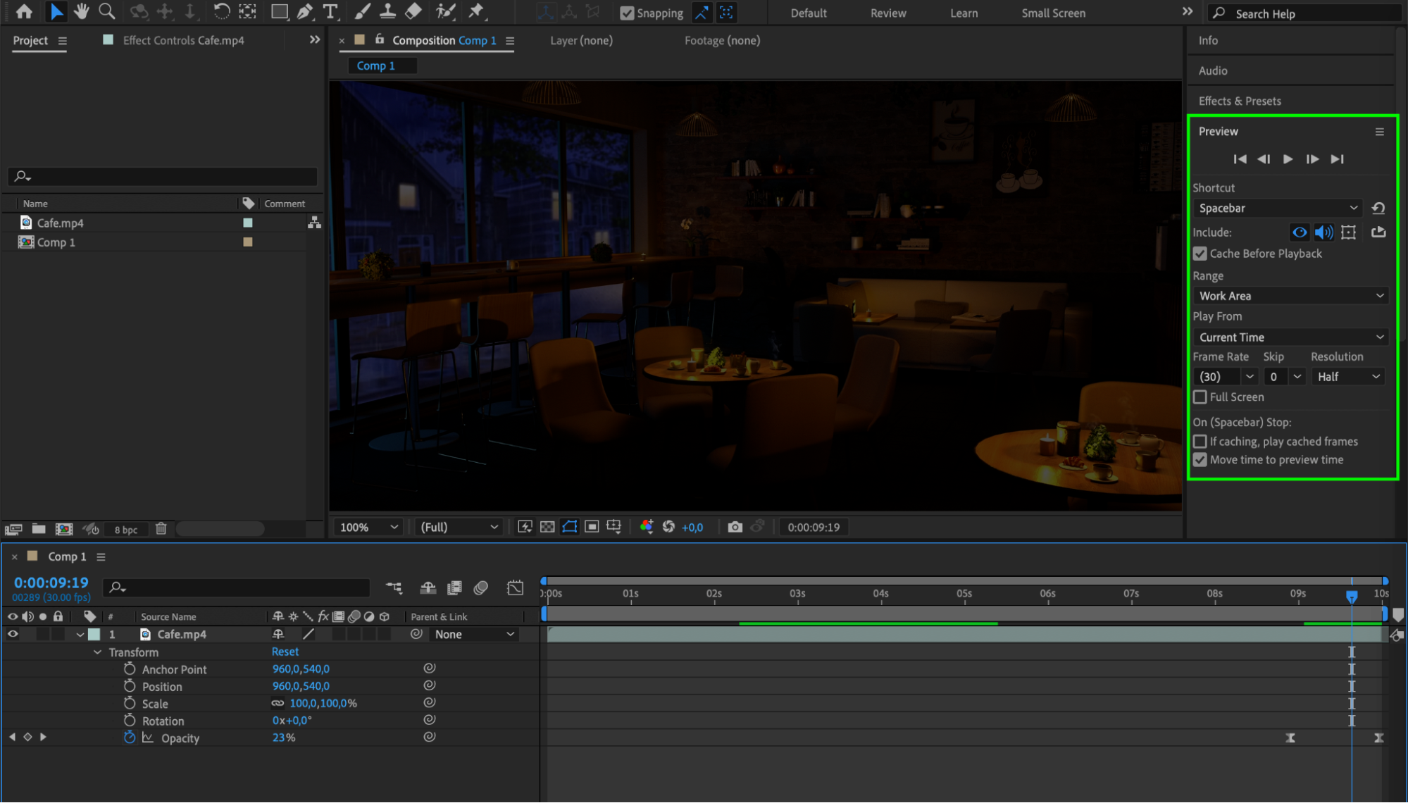 Preview your composition by pressing the spacebar. This will play the timeline and allow you to see the fade-out effect in action. If necessary, make adjustments to the timing or opacity values to achieve the desired result.
