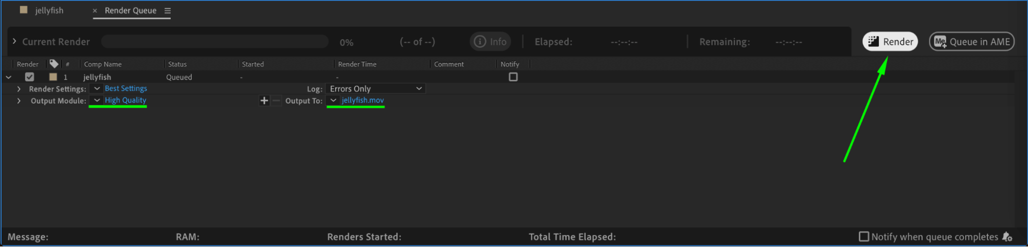 If you’re satisfied with the result, it’s time to export your GIF. Go to the Composition menu, select Add to Render Queue. In the Render Queue panel, adjust the output settings as needed. Choose the GIF format if available, or export as a video file first and convert it to a GIF using a third-party tool. Once your settings are in place, click on the Render button.