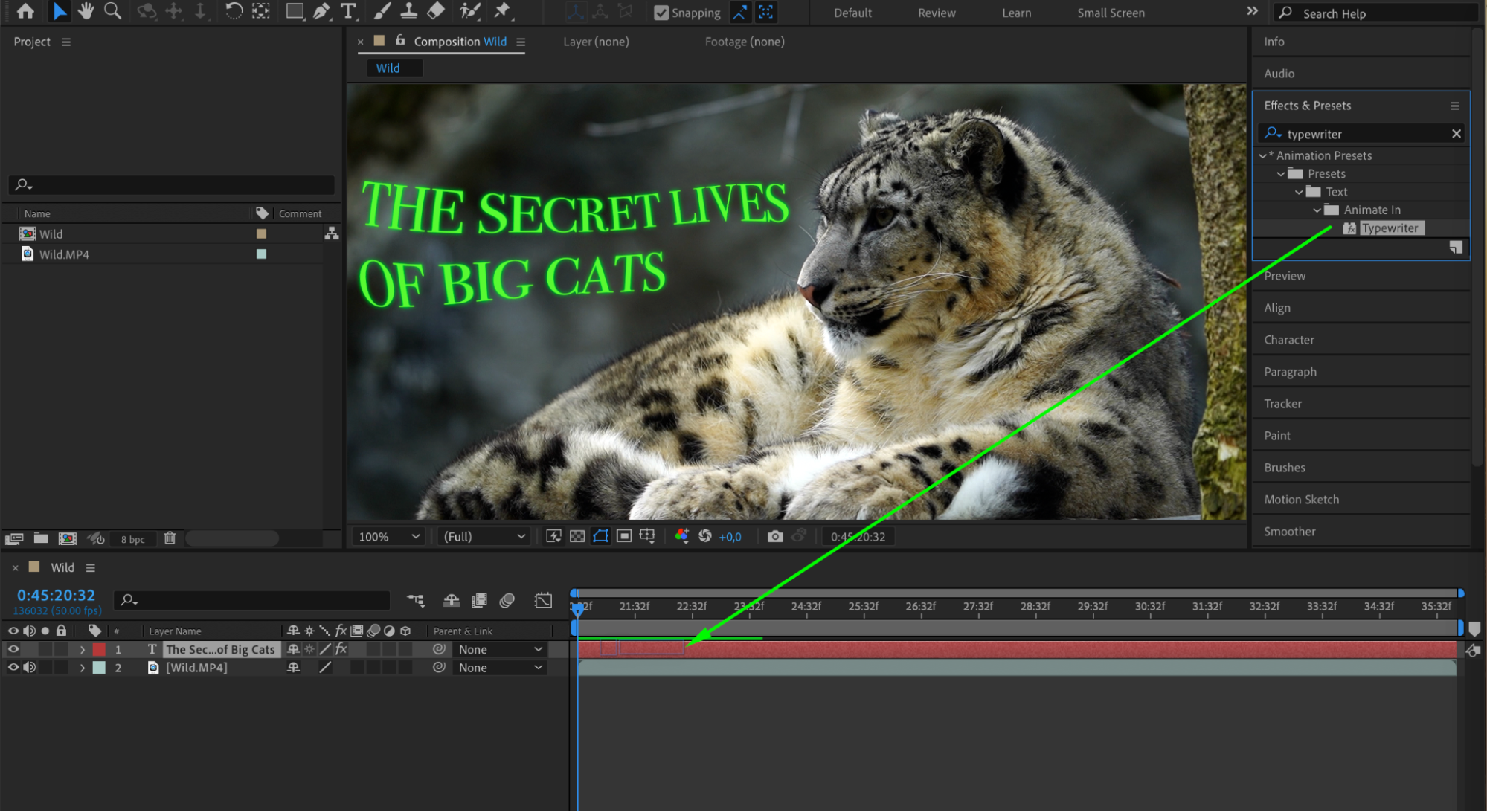 You can also use animation presets that come with built-in keyframes. Drag and drop presets from the Effects & Presets panel onto your layer. Adjust the keyframes to customize the animation and achieve the desired look.