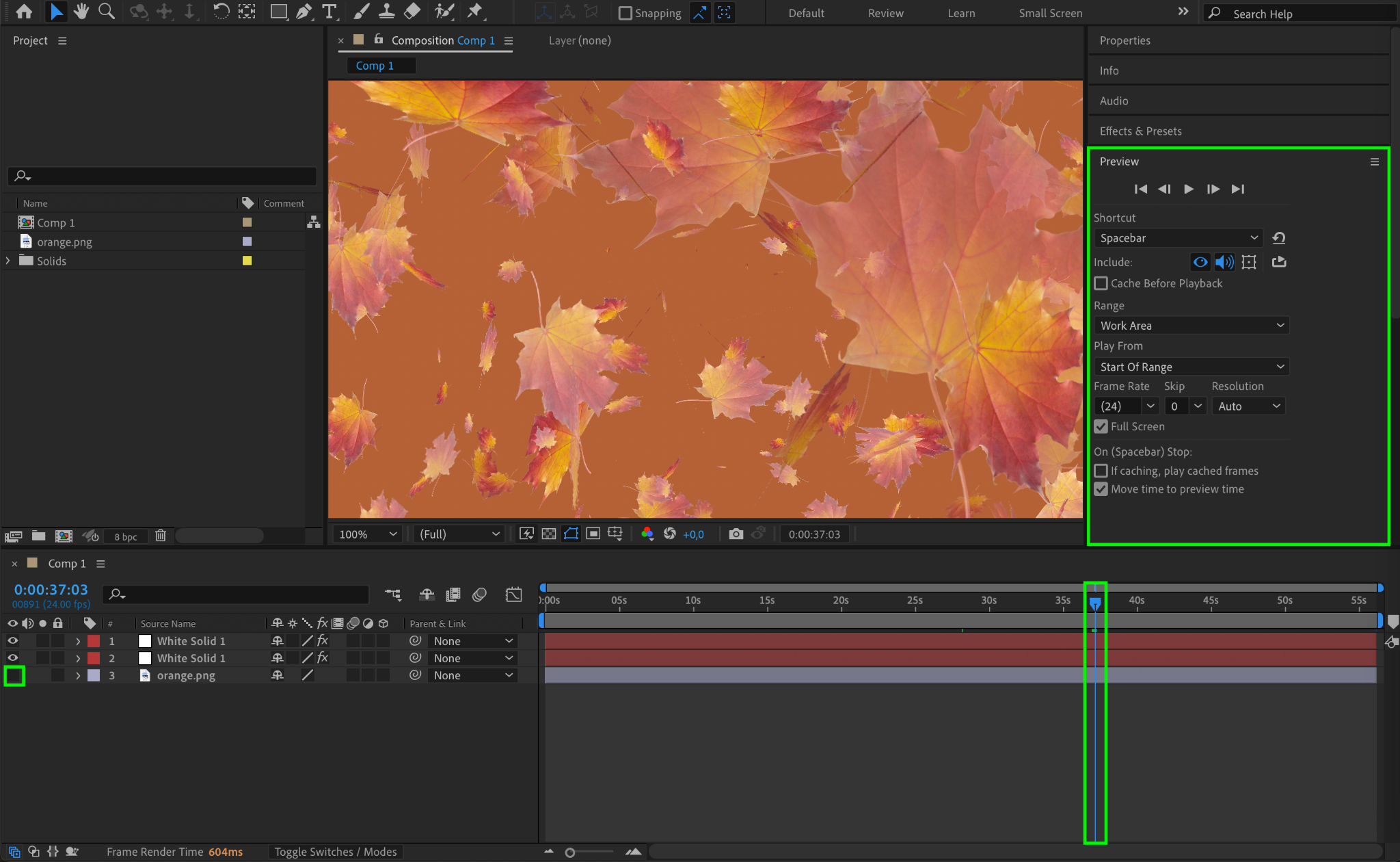 Once you’re satisfied with your falling leaves animation, render the composition. Go to Composition > Add to Render Queue, select your output settings, and render the final video.