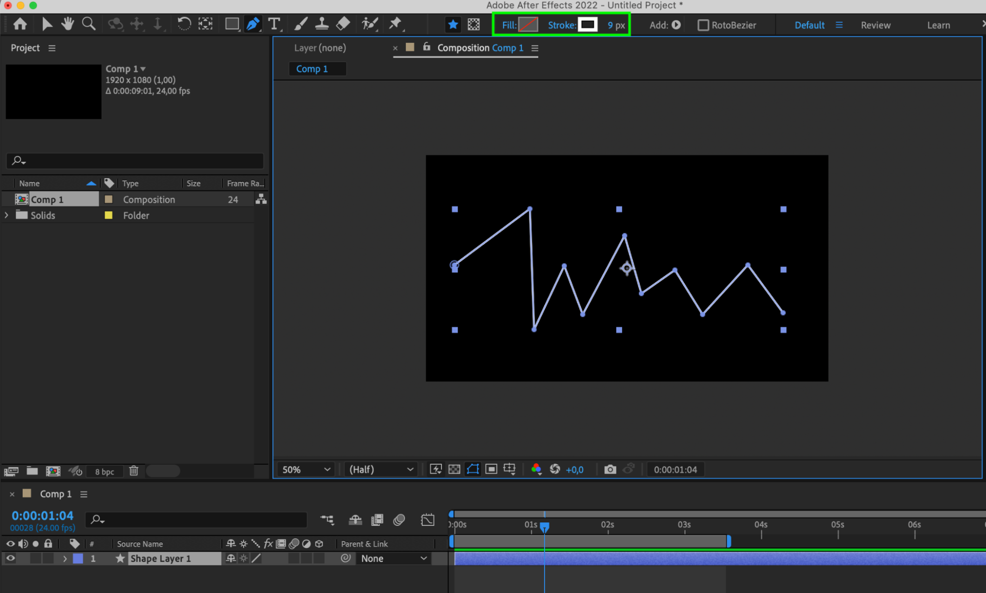 Use the Pen Tool (G) to create a path with white stroke, 9 px.
