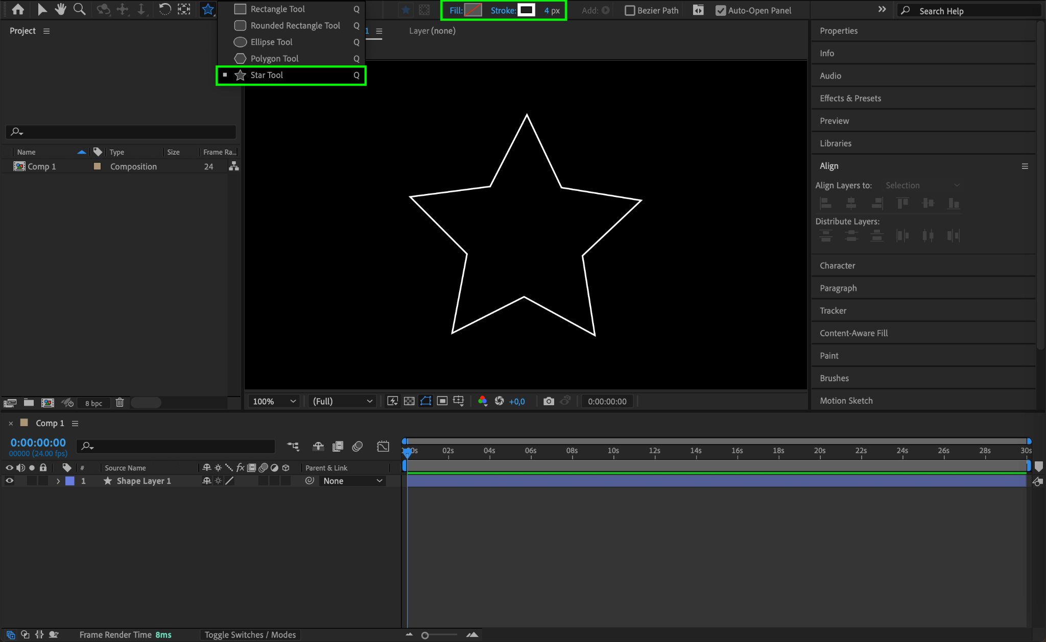 Next, create the shape or text that you want to apply the neon effect to. You can use the Shape Tool (Q) or the Pen Tool (G) to draw shapes, or you can create text using the Text Tool (Ctrl/Cmd + T). Set the fill color of the shape or text to white, and adjust the Stroke to be as thin as possible to mimic the neon tube. For text, choose a font that suits the neon style.