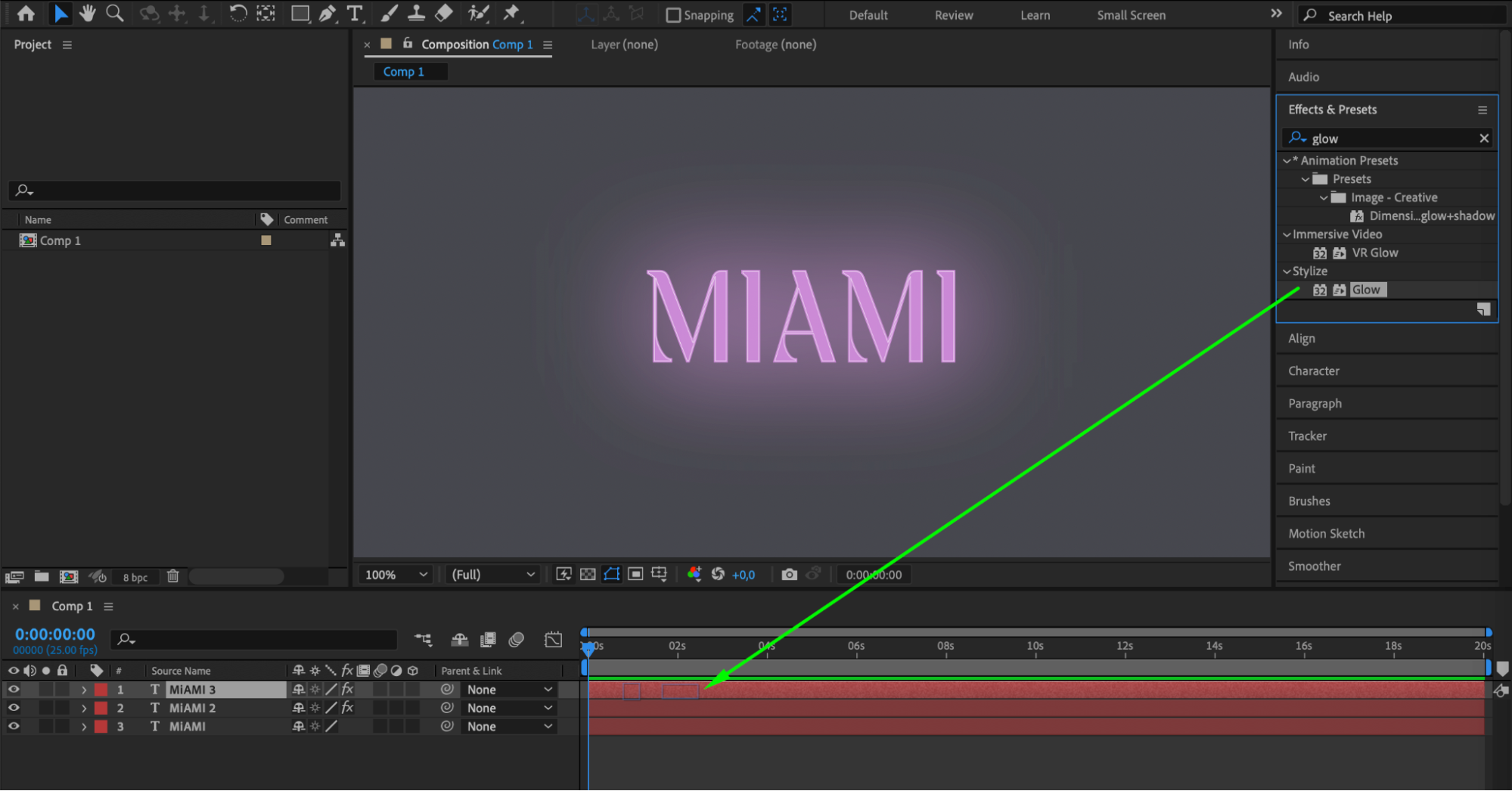 To enhance the neon effect even further, duplicate the duplicated layer again and apply the Glow effect to this duplicated layer. Customize the glow settings, such as intensity, radius, and color, to make the text glow in a way that captures attention.