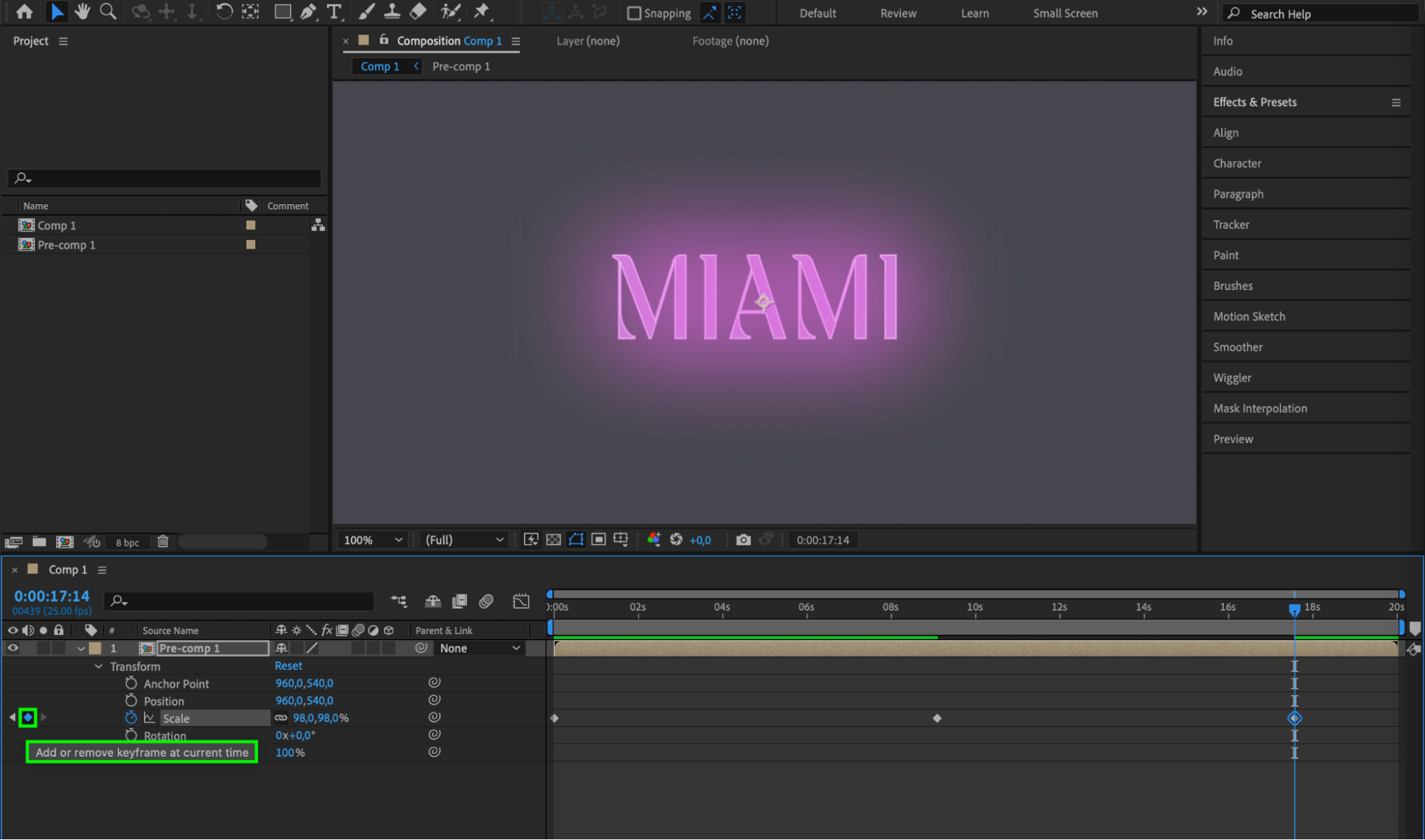 To bring your neon text to life, add keyframes to animate it. Experiment with properties like position, scale, rotation, and opacity to create dynamic movements. You can also use the Text Animator feature to add exciting animation presets to your text. Also, utilize pre-composition for easier layer management.