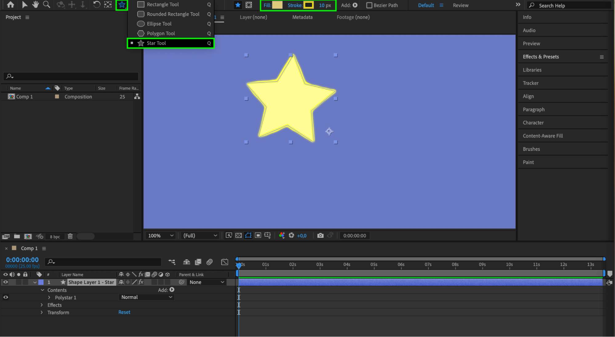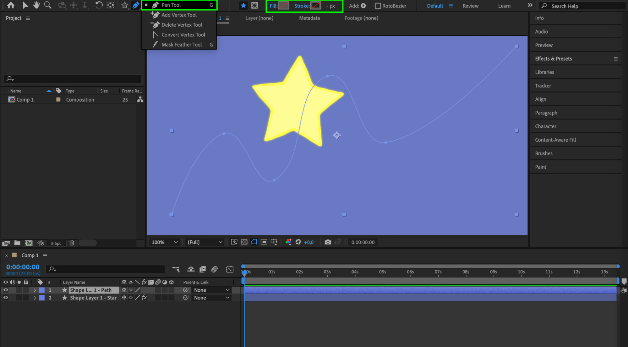 Next, import your object or create one using the Rectangle (Shape) Tool (Q). If you are importing, drag and drop the object into your composition timeline.