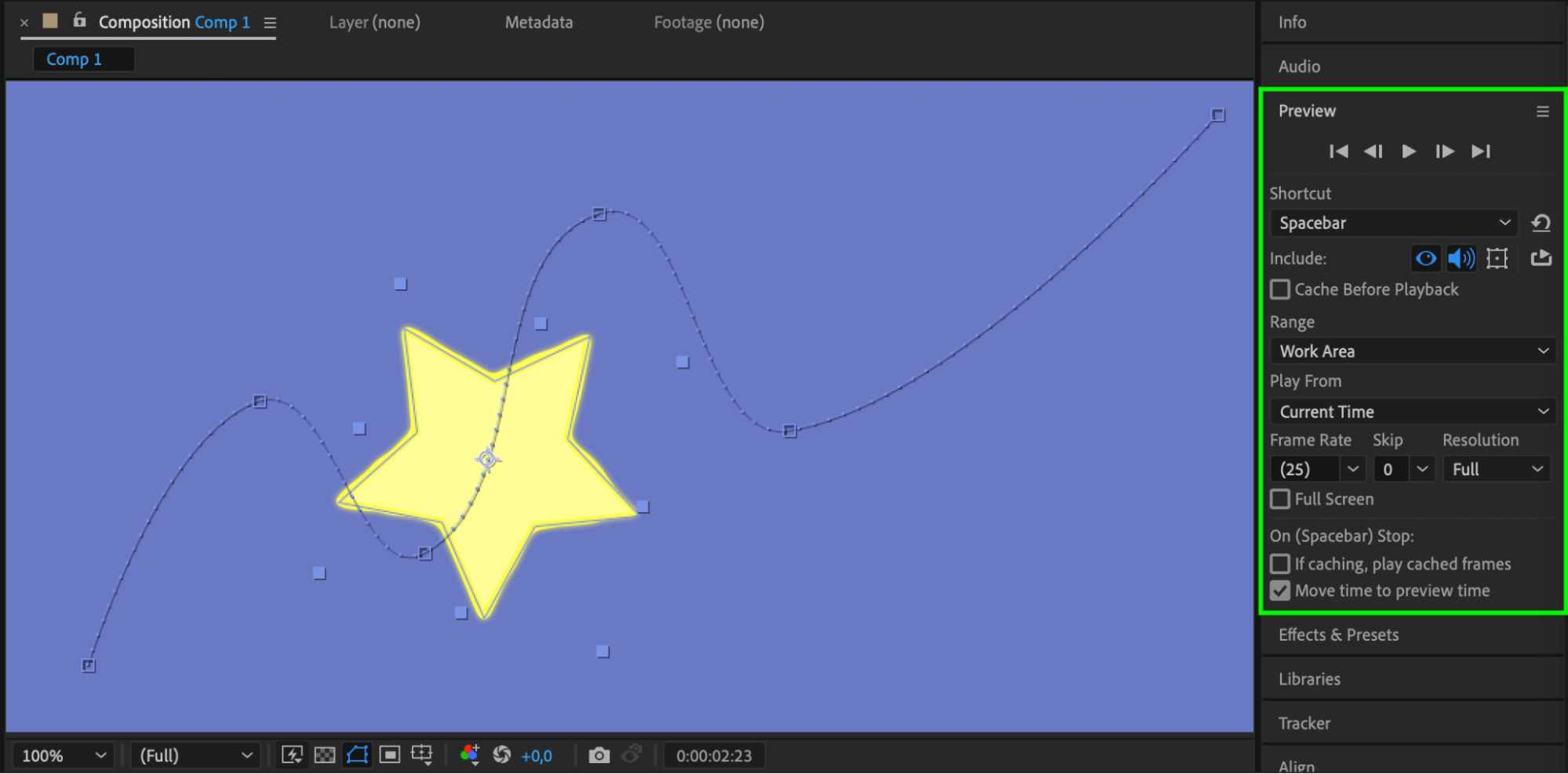Press the space bar to preview your composition in the composition window. Make any necessary tweaks to ensure the animation looks smooth and achieves the desired effect.
