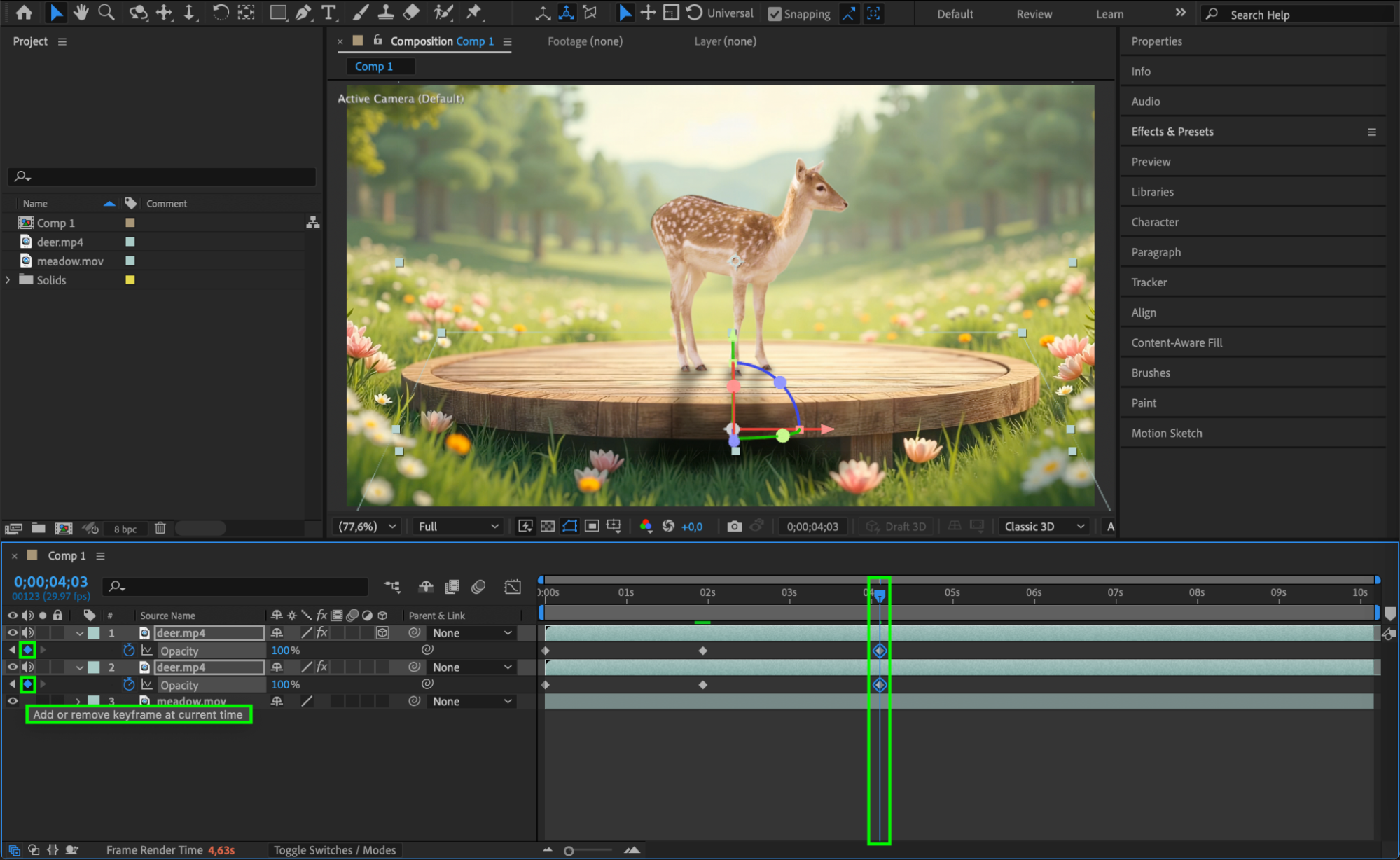 By combining green screen removal, subtle shadow effects, and animated opacity, you can create professional-looking appear and disappear effects in After Effects. These techniques are perfect for transitions, magical reveals, or adding dynamic motion to your videos.