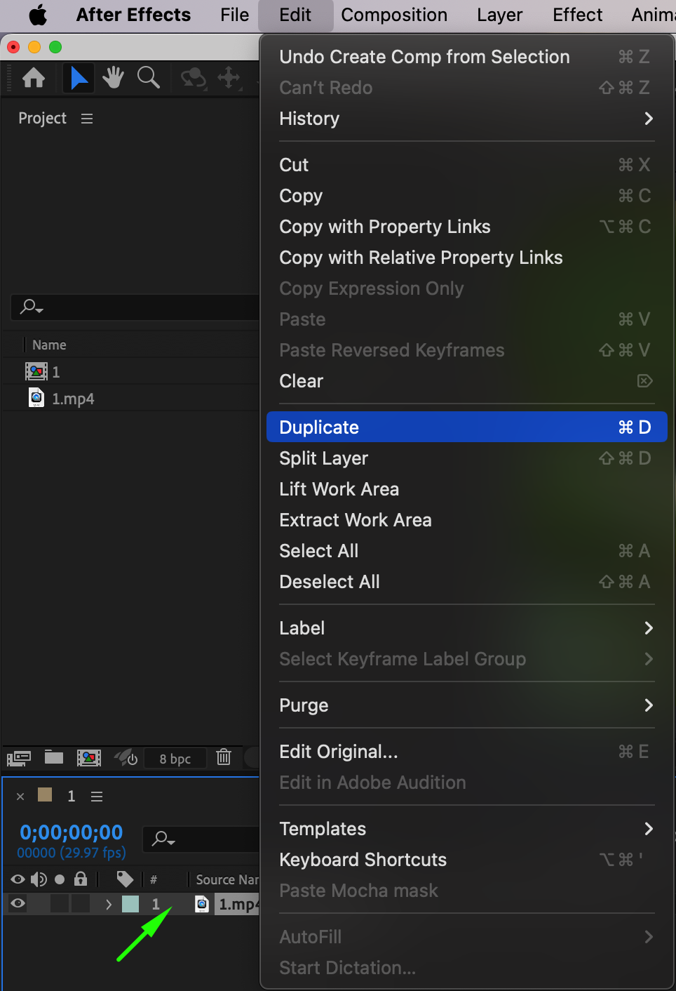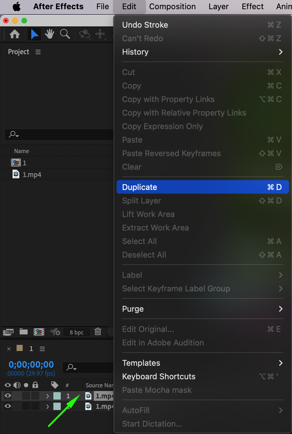 To prepare for isolating the subject, duplicate the layer by selecting it in the timeline and pressing “Ctrl/Cmd + D”. This creates a copy that you will use to apply different effects.