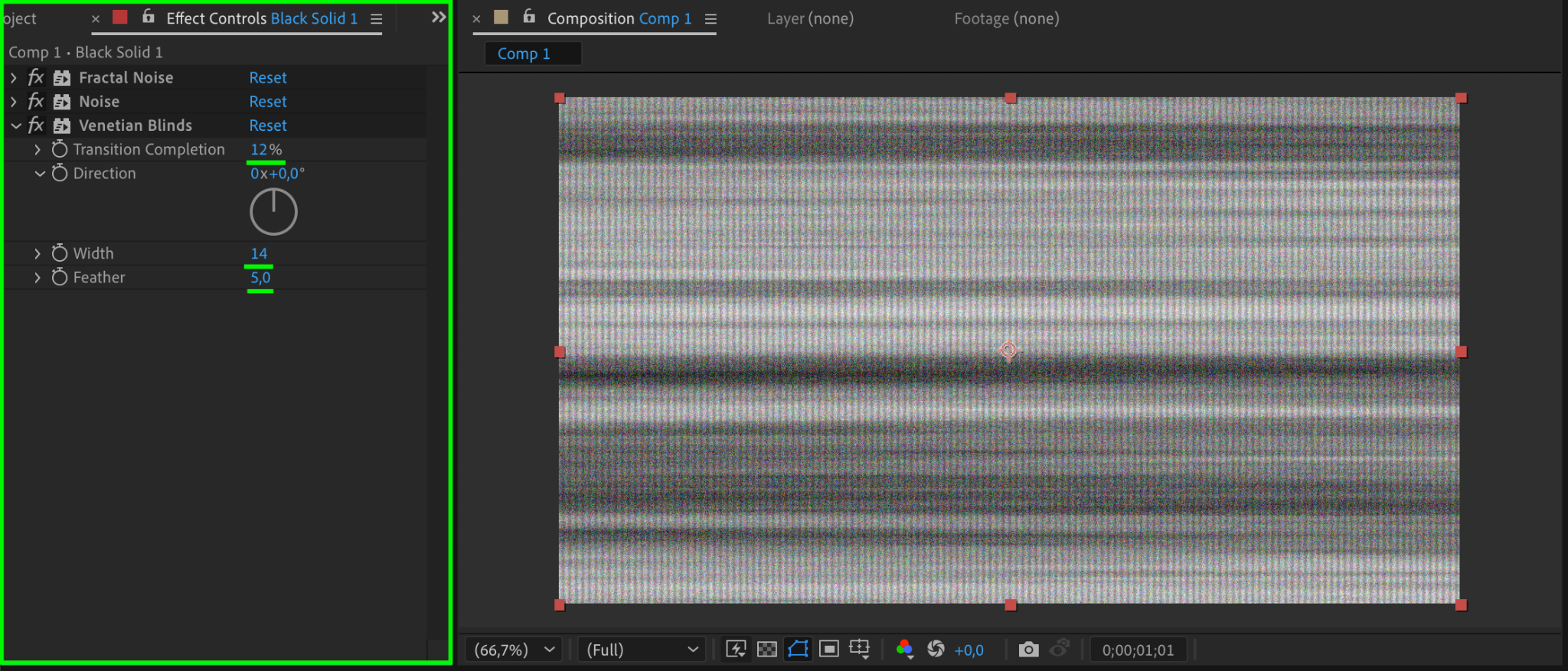 Apply the Venetian Blinds effect to the layer. Adjust the settings as follows: