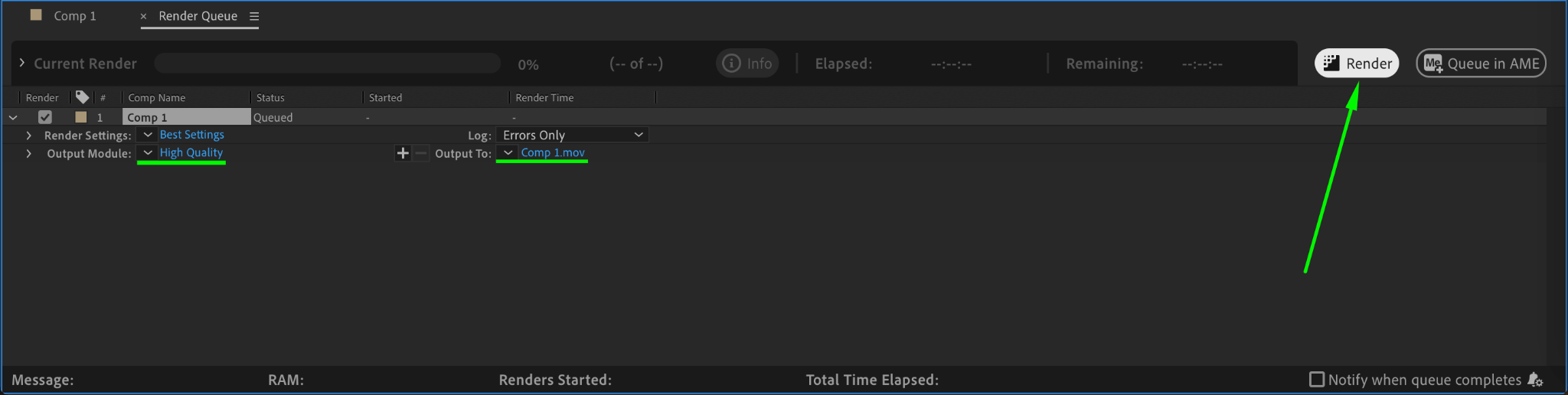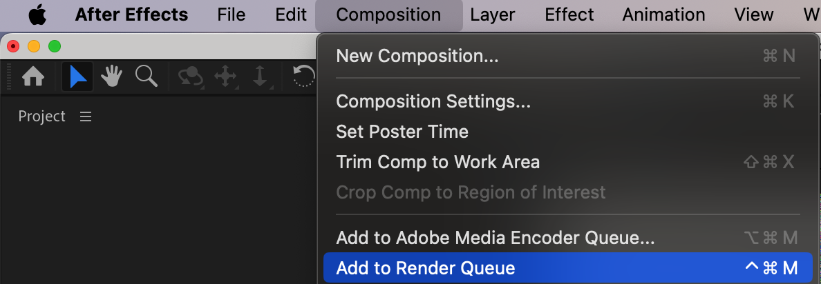 Go to Composition > Add to Render Queue.