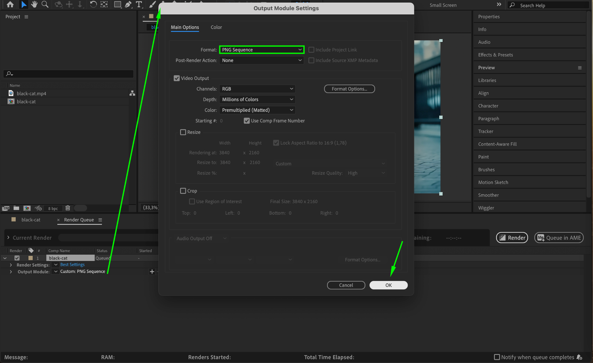 Step 3: Set Output Format to PNG Sequence
