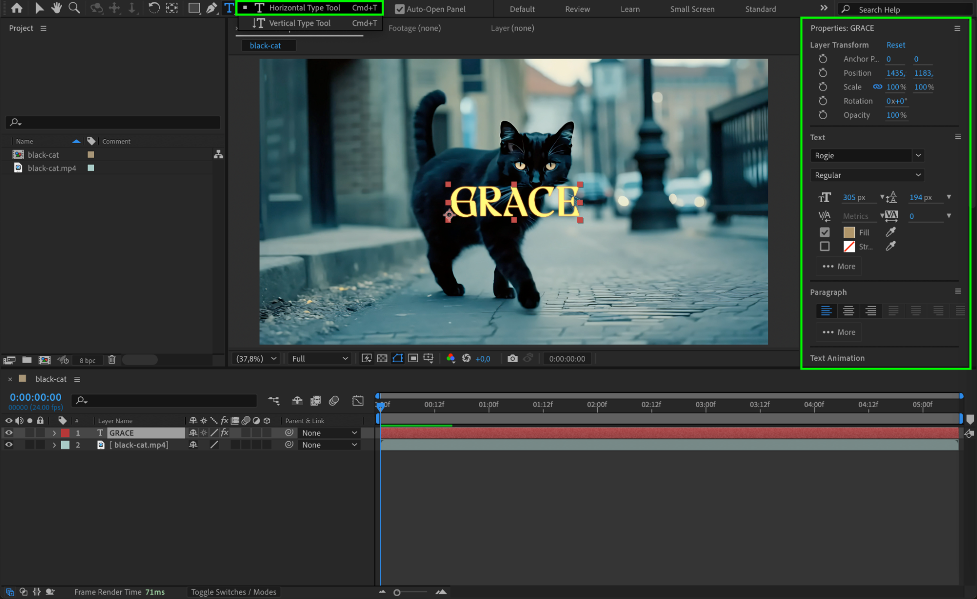Use the Type Tool (Ctrl/Cmd + T) to create the text that you want to attach to the object. Place it above your footage layer on the timeline.