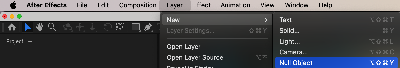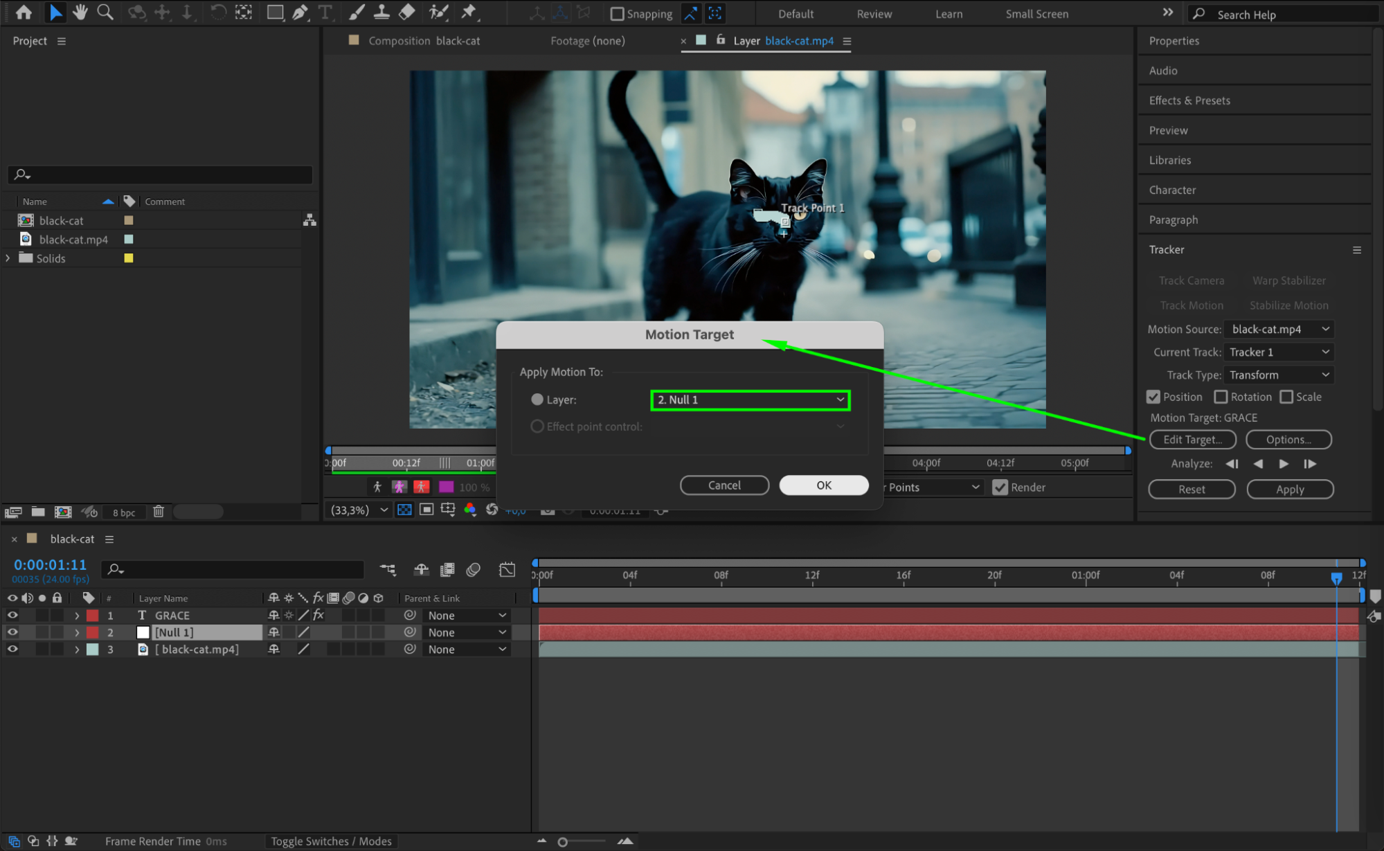 Go to Layer > New > Null Object. This object will receive the tracking data. Then go back to the tracker panel and click Edit Target, choose the null object, and click Apply to apply the tracking data to it.