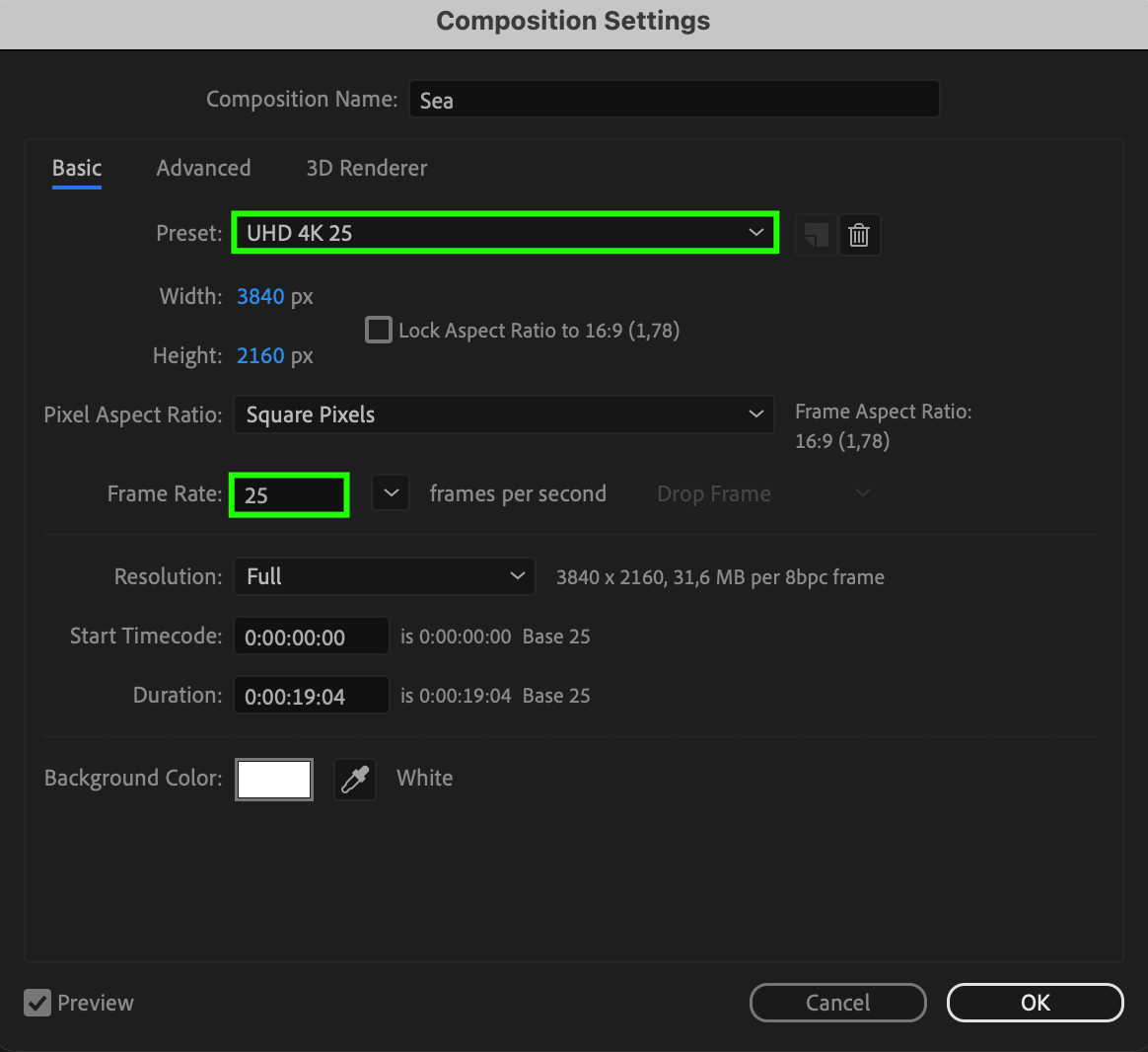 Check the settings of your composition to ensure they match the required parameters. Typically, this includes HD (1920×1080) or 4K (3840×2160) resolution and a standard frame rate (24, 25, or 30 frames per second).