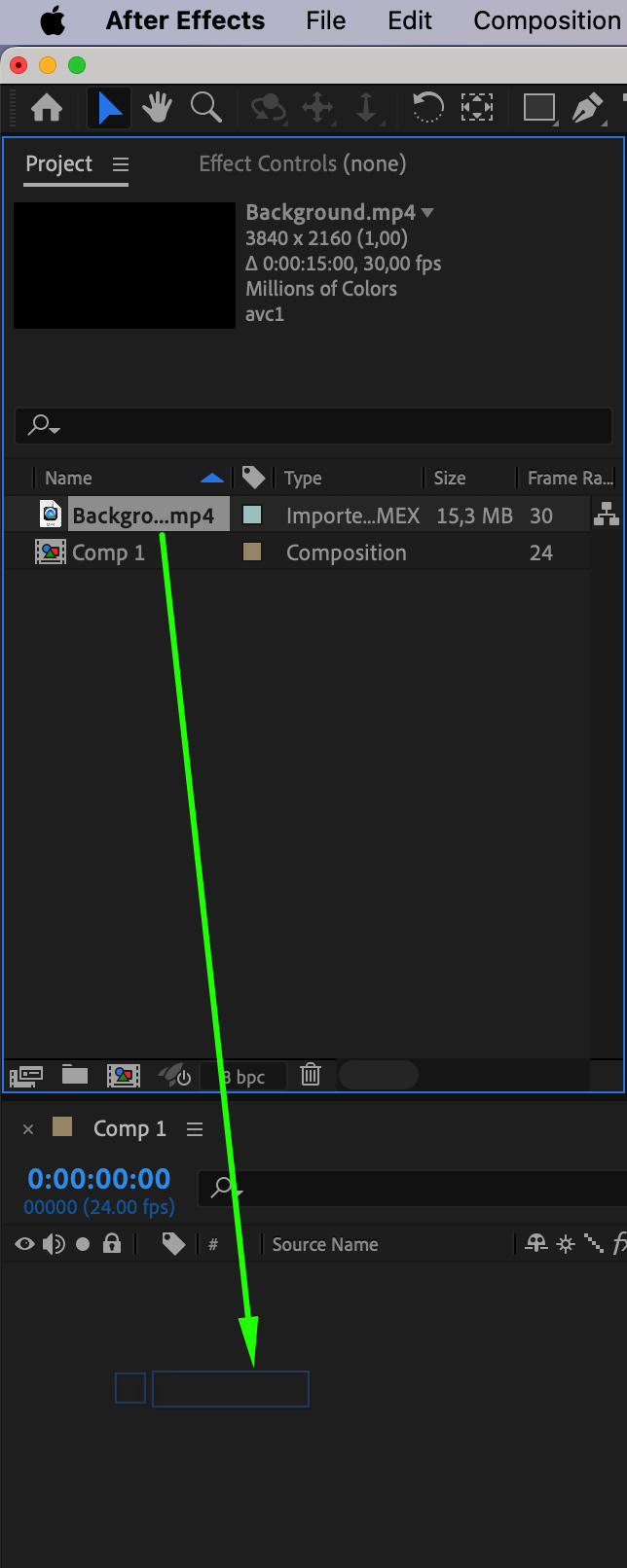Next, import the assets you’ll need, such as background images or textures, by going to File > Import > File. Once imported, drag these assets onto the Timeline panel. Position and scale them as necessary to fit your composition. Properly arranging your background and other elements creates the foundation for your title card, giving it a polished and professional appearance.