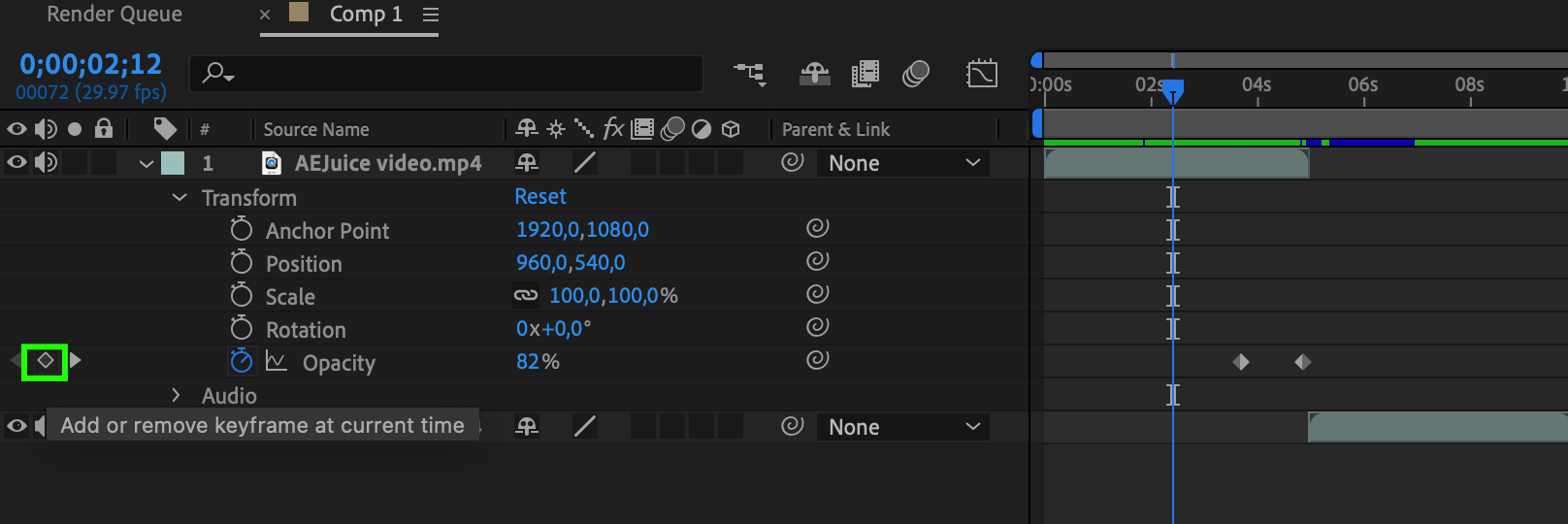 4. Master the art of masking: Masks are invaluable for creating smooth transitions within individual layers or between multiple layers. Whether you’re using a simple shape or a complex custom mask, they allow you to reveal or hide specific parts of your footage, creating seamless transitions. The hotkey “M” will quickly reveal the mask properties if needed.