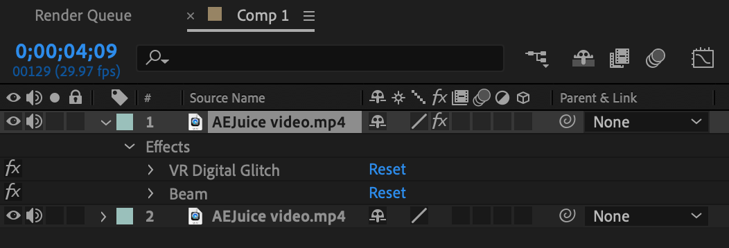 6 Experiment with effects and blending modes: After Effects offers a vast array of effects and blending modes that can transform your transitions into visually stunning sequences. From simple crossfades to dynamic glitch effects, don’t be afraid to explore and experiment with different effects to find the perfect look for your transitions. The “E” key will quickly reveal effects applied to a layer(s).