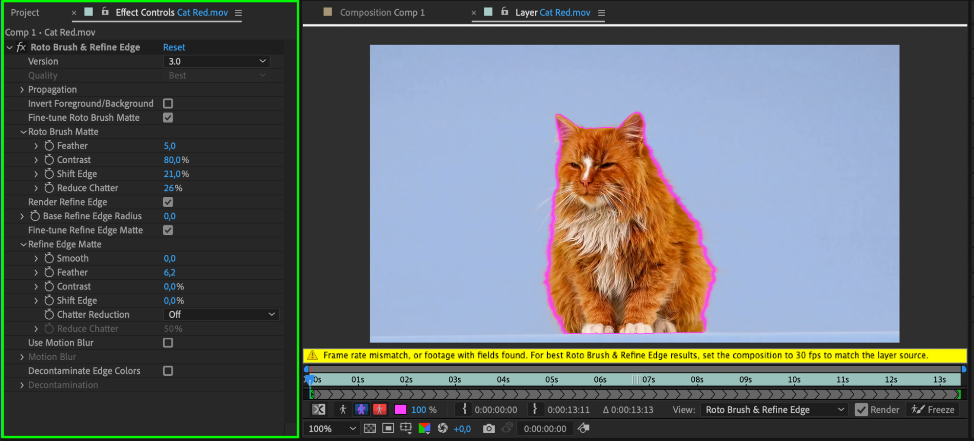 Step 6: Freeze the Roto Brush Selection