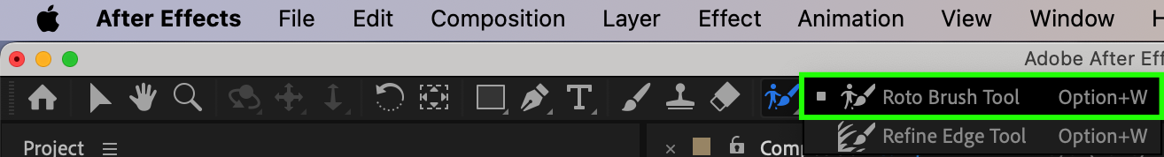 After Effects has a variety of tools for removing backgrounds, and one of the most versatile is the Roto Brush tool. Select the footage layer in the timeline and choose the Roto Brush Tool from the toolbar or use the shortcut “Alt/Option + W”. The Roto Brush panel will open, allowing you to start drawing strokes to define the foreground and background areas.