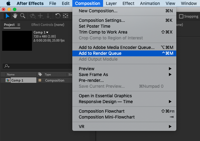 5. When you have finished animating your text, add the composition to the Render Queue by going to Composition and selecting Add to Render Queue.