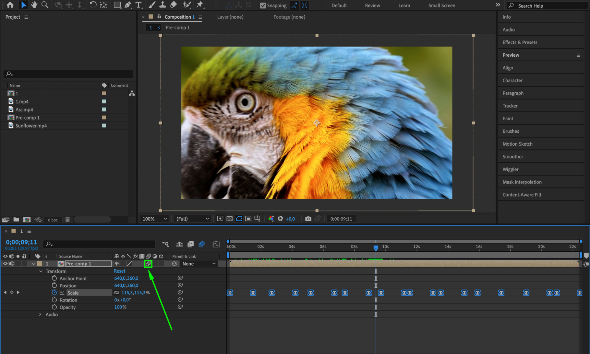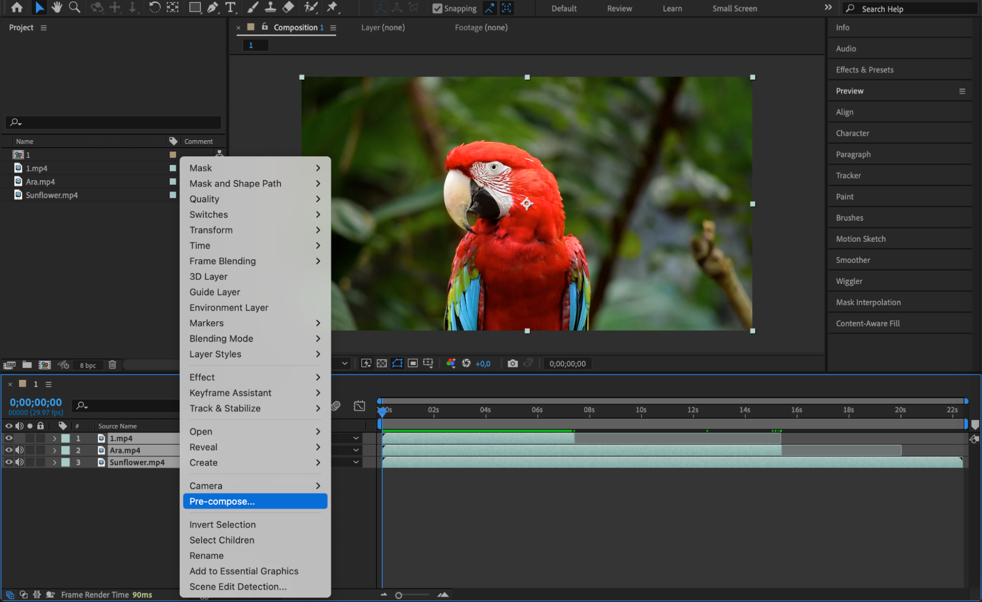 To start, let’s talk about precomposing and layer organization. By precomposing your layers, you can minimize clutter and make editing more efficient. This technique allows you to apply effects and transformations to multiple layers at once, ensuring a consistent look throughout your video. To precompose, select the layers you want to group, right-click, and choose “Pre-compose.” Give your precomposition a name and adjust its settings as needed. This helps you manage complex compositions and keeps your timeline organized.