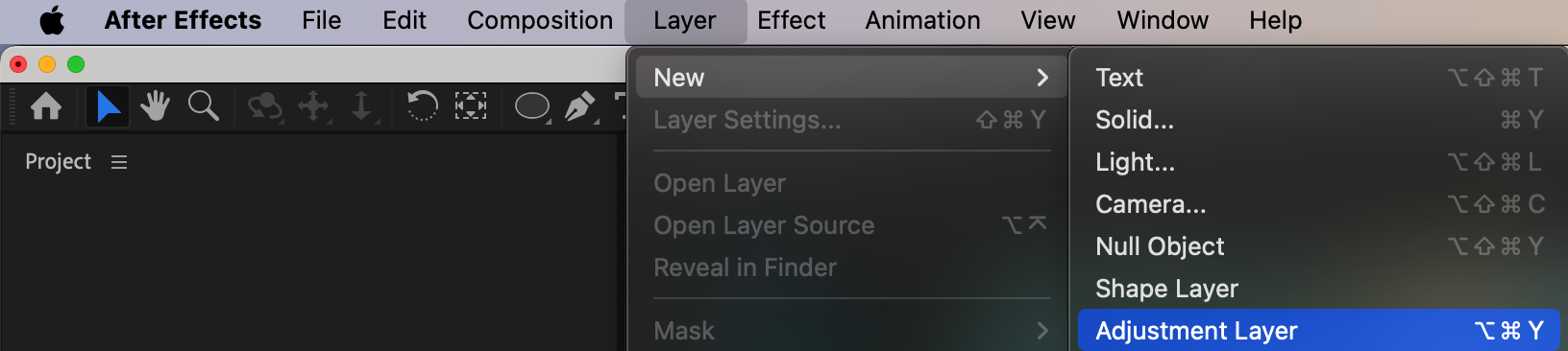 To apply an effect that you can mask, you’ll need an Adjustment Layer. Go to Layer > New > Adjustment Layer. This layer will act as a transparent layer on top of your video, allowing you to add effects without altering the original footage directly.