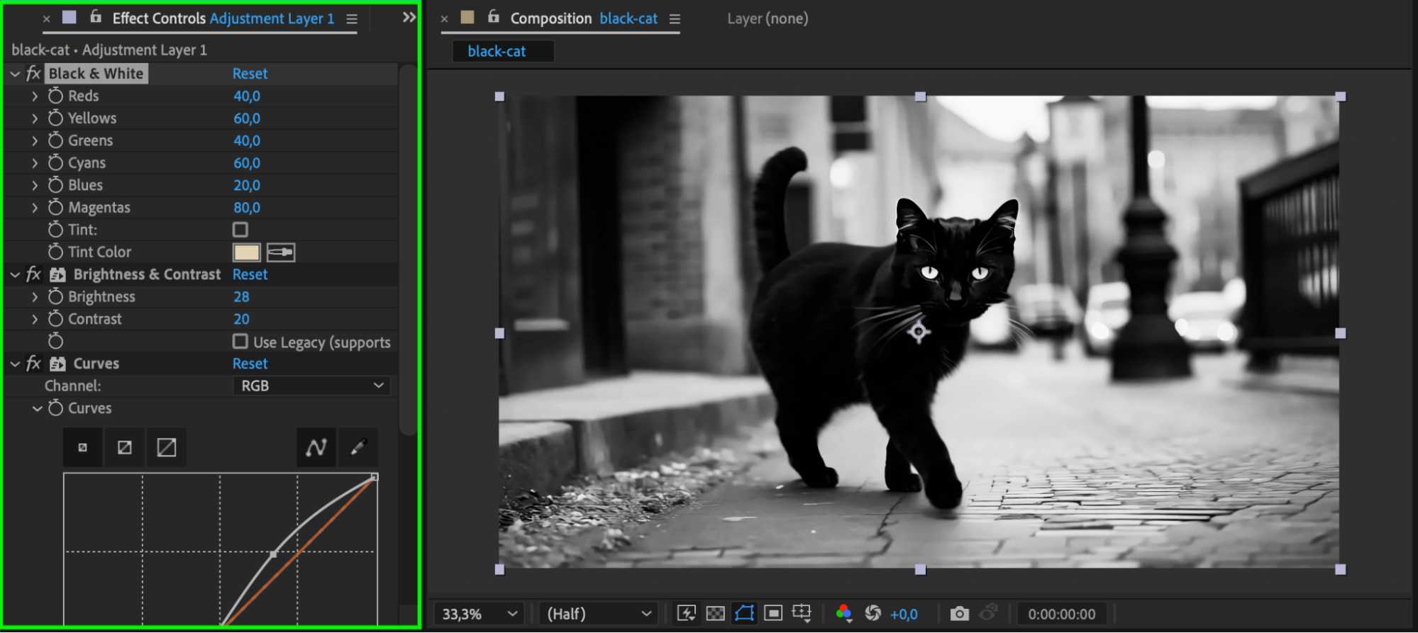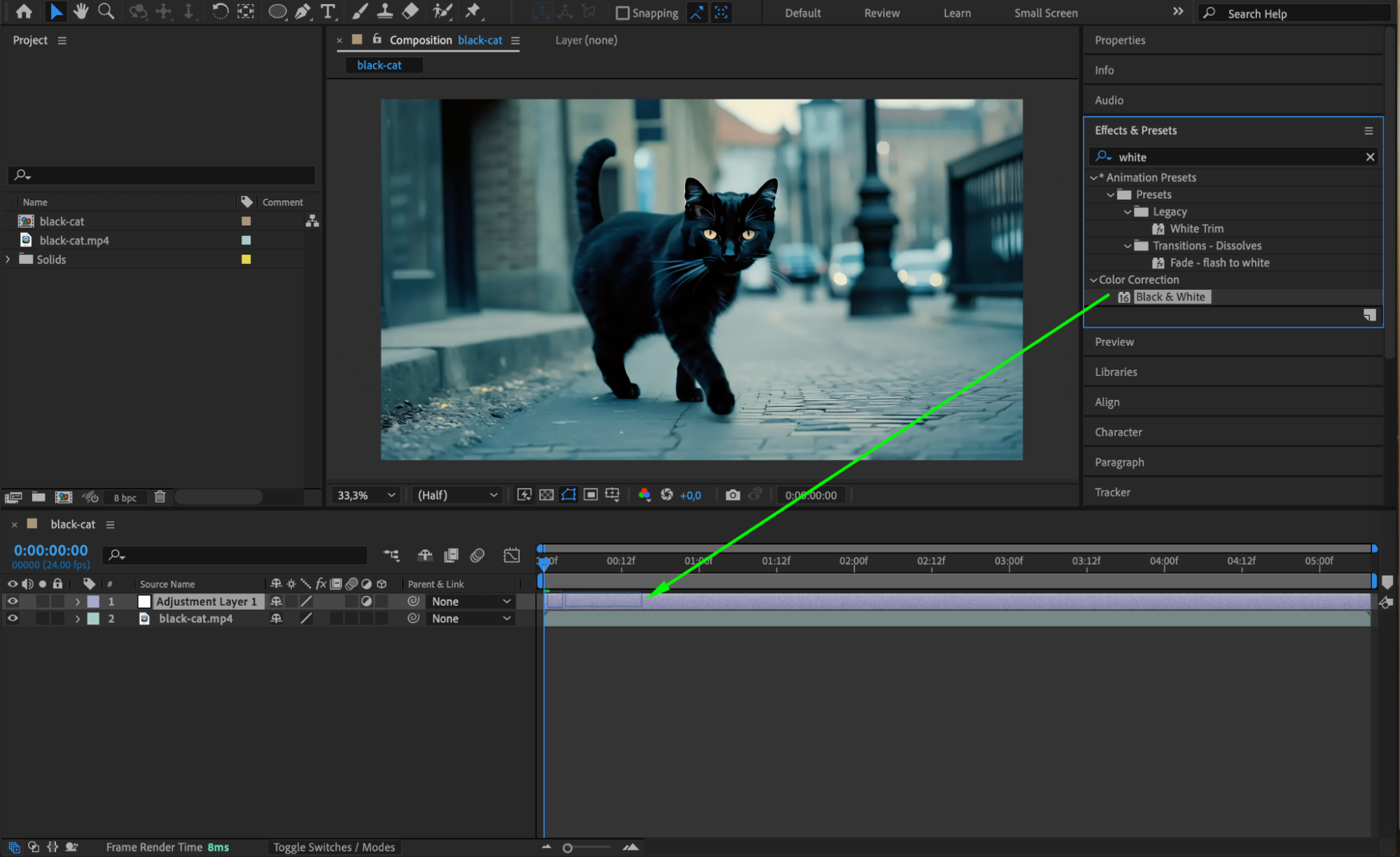 With the adjustment layer selected, go to the Effects & Presets panel, choose the effects you want to apply, and drag them onto the adjustment layer. In the Effect Controls panel, you can edit each effect’s settings to achieve the look you want. Adjust parameters like intensity, color, or blur to match the desired style.