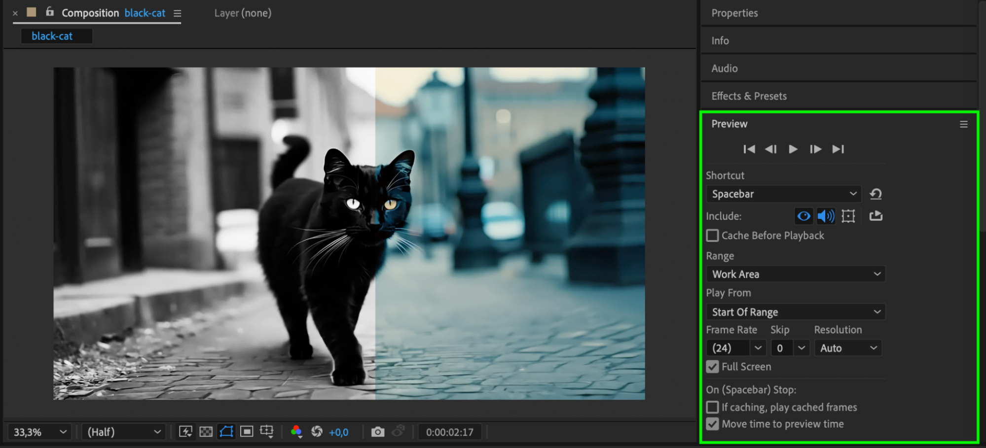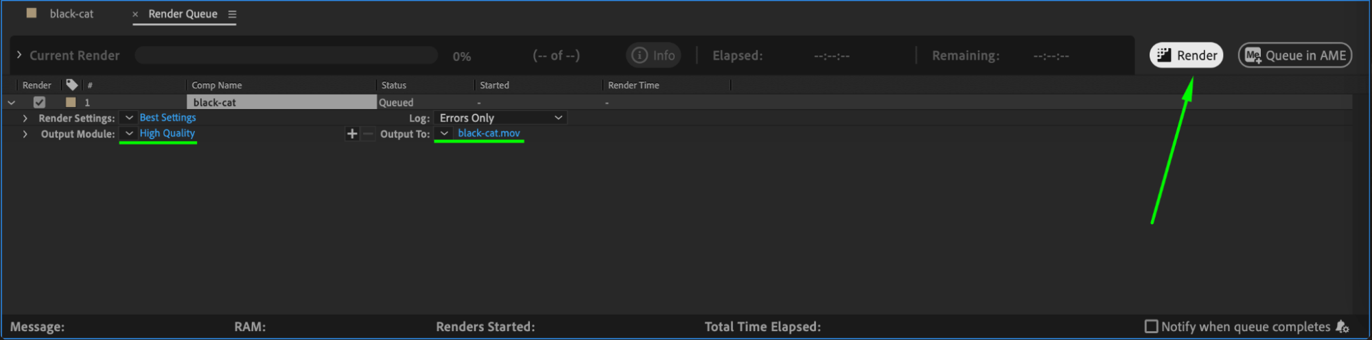 Once satisfied with the result, go to Composition > Add to Render Queue. Set your output settings, and click Render to export the video. The masked effect will now be applied to the specific area you selected, enhancing your project with a focused visual element.