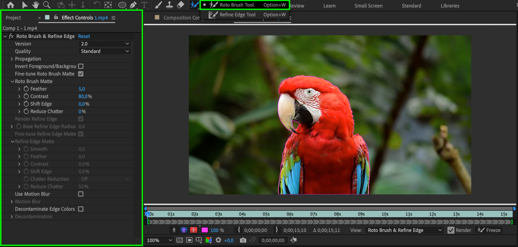 Rotoscoping is a technique where you manually draw masks frame by frame to isolate objects or subjects in a video clip. While it can be time-consuming, it offers precise control in complex scenes where automatic tracking might not be accurate. After Effects provides tools like the Roto Brush and Refine Edge (Alt/Option + W) to streamline the rotoscoping process and make it more efficient. Once you’ve isolated your object, you can get creative – for example, by adding a new background with a solid layer or integrating the object into a different scene.