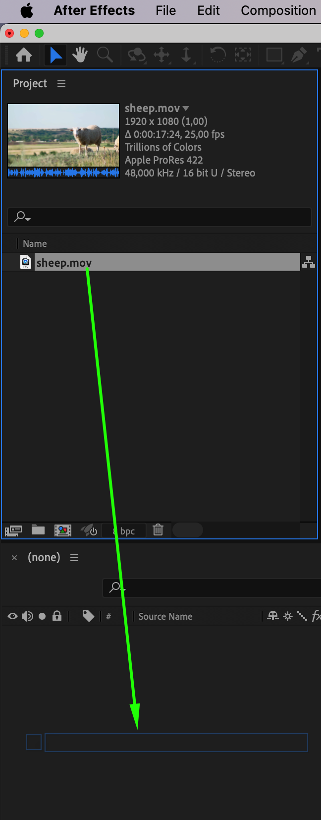 First, import your video or image footage into After Effects. Go to File > Import > File and select the footage you want to work with. Drag the imported file into the timeline to create a new composition.