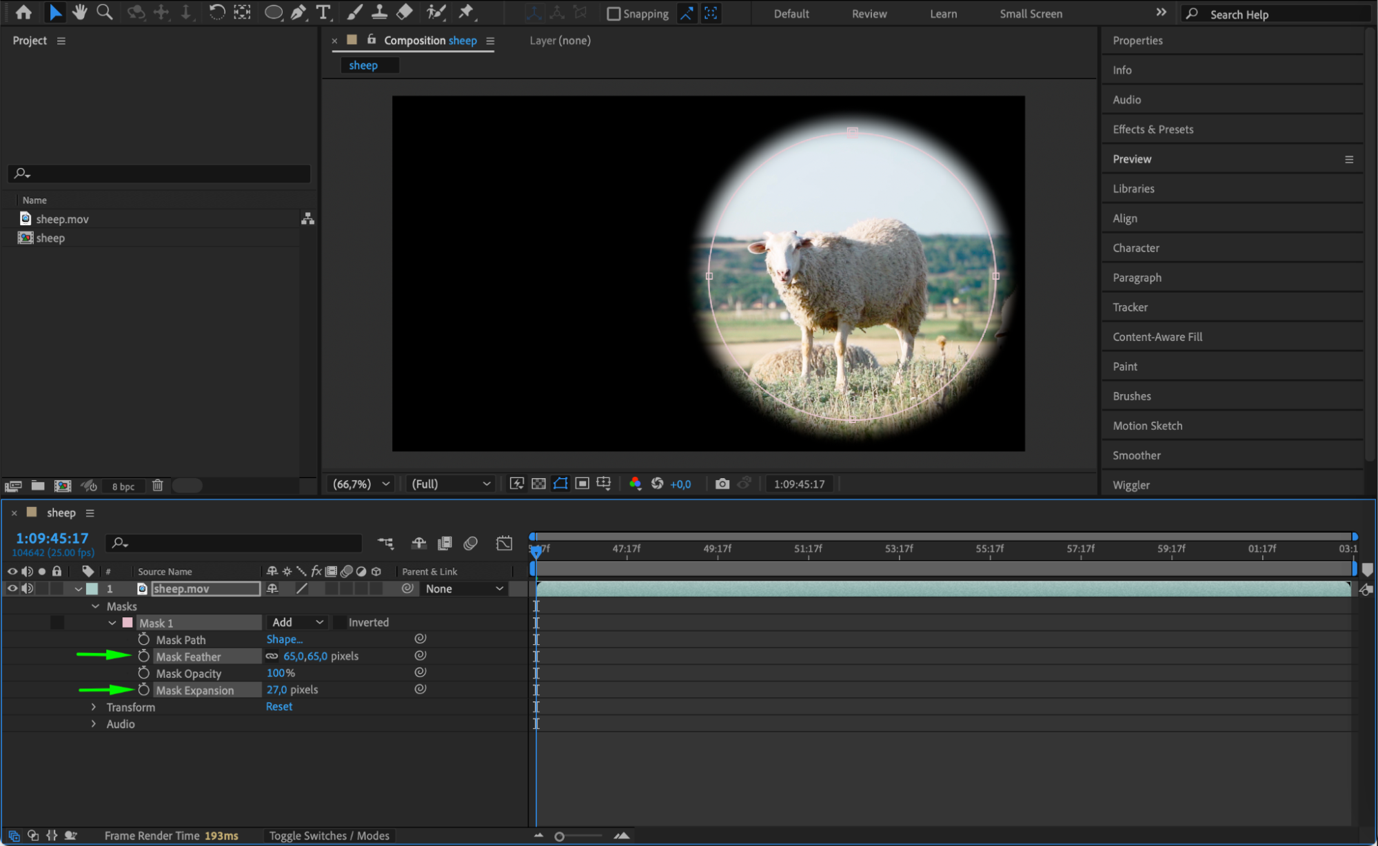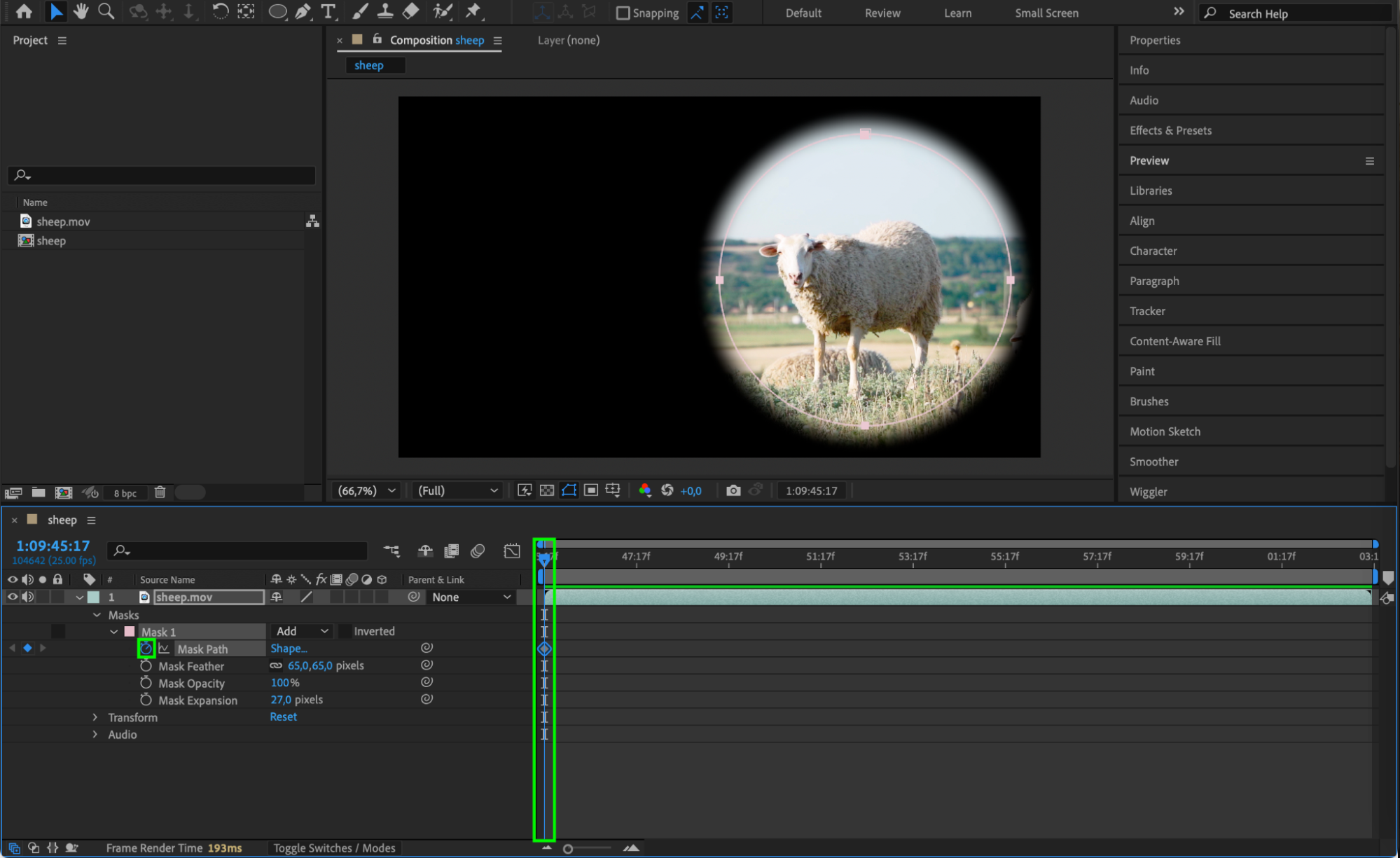 Press the Spacebar to preview the composition and check how the mask interacts with the layer. If necessary, adjust the mask’s position, feather, or animation to achieve the desired result.