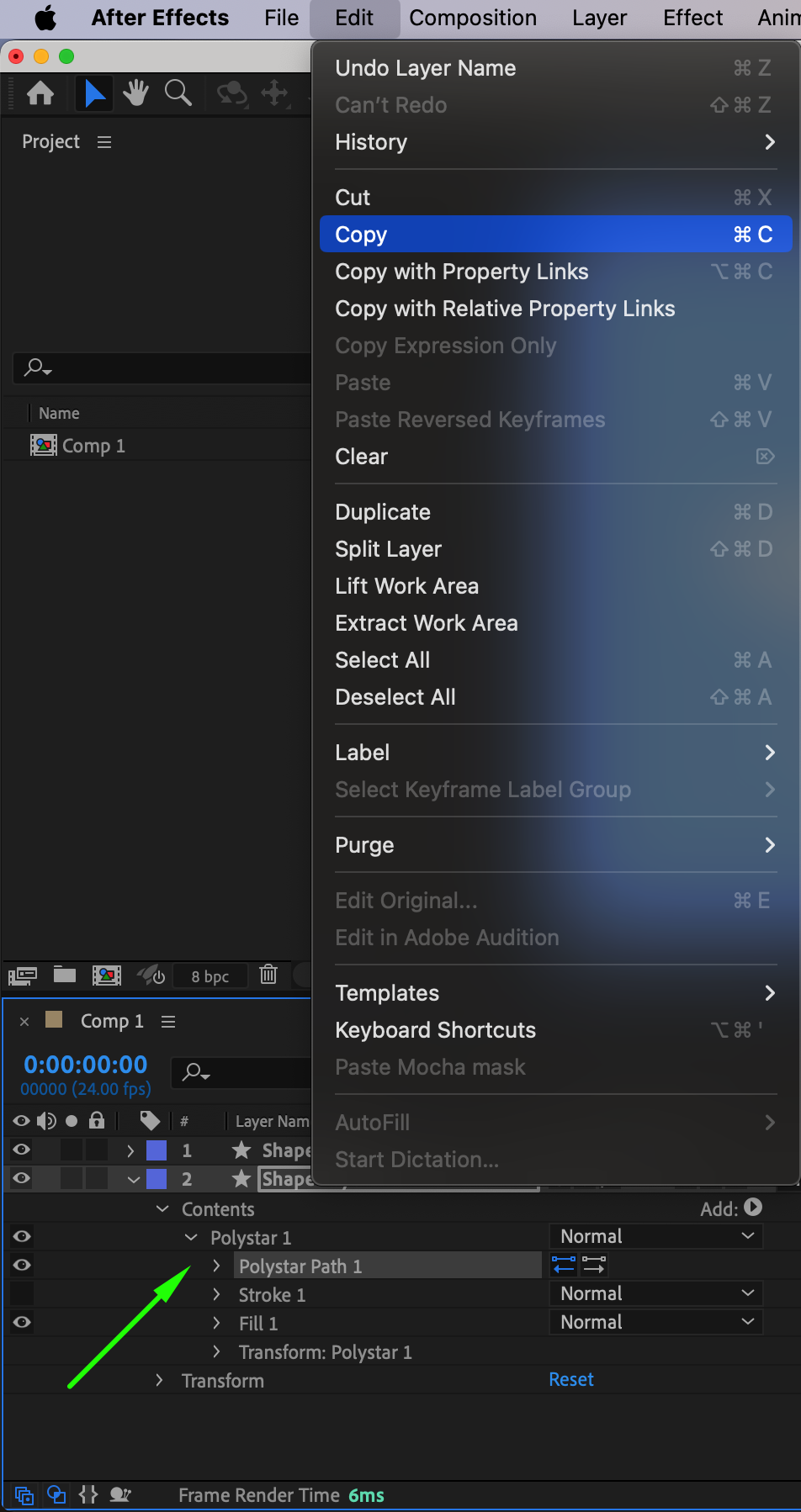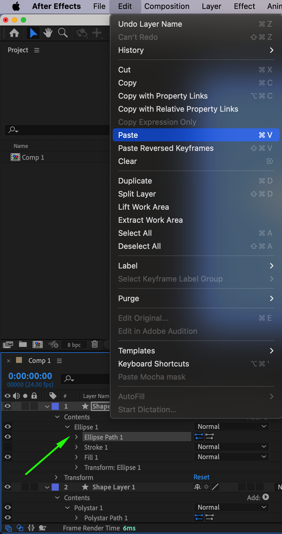 This method involves copying and pasting the contents from one shape layer to another, allowing you to effectively merge shapes while keeping their attributes. First, open the “Contents” of the source shape layer and locate the path you want to merge (e.g., Shape Path 1). Copy it (Ctrl/Cmd+C), then open the destination shape layer, navigate to its “Contents,” and paste the copied shape (Ctrl/Cmd+V). This method is ideal when you need to combine shapes but want to maintain control over their individual attributes and properties.