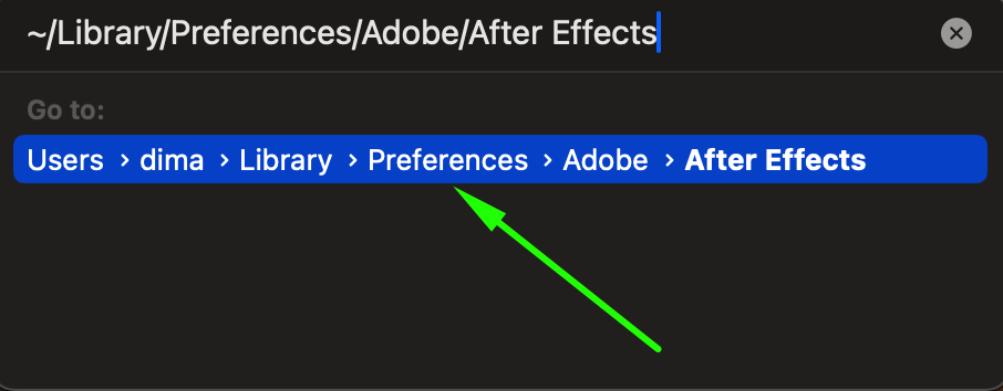 On macOS: Again, use Finder’s “Go to Folder” option to locate the After Effects preferences.
