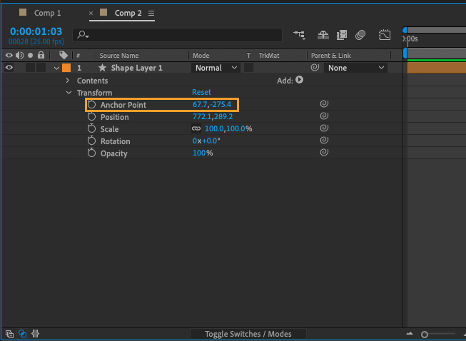 If you need to move the anchor point to a new location, you can use the Pan Behind Tool: