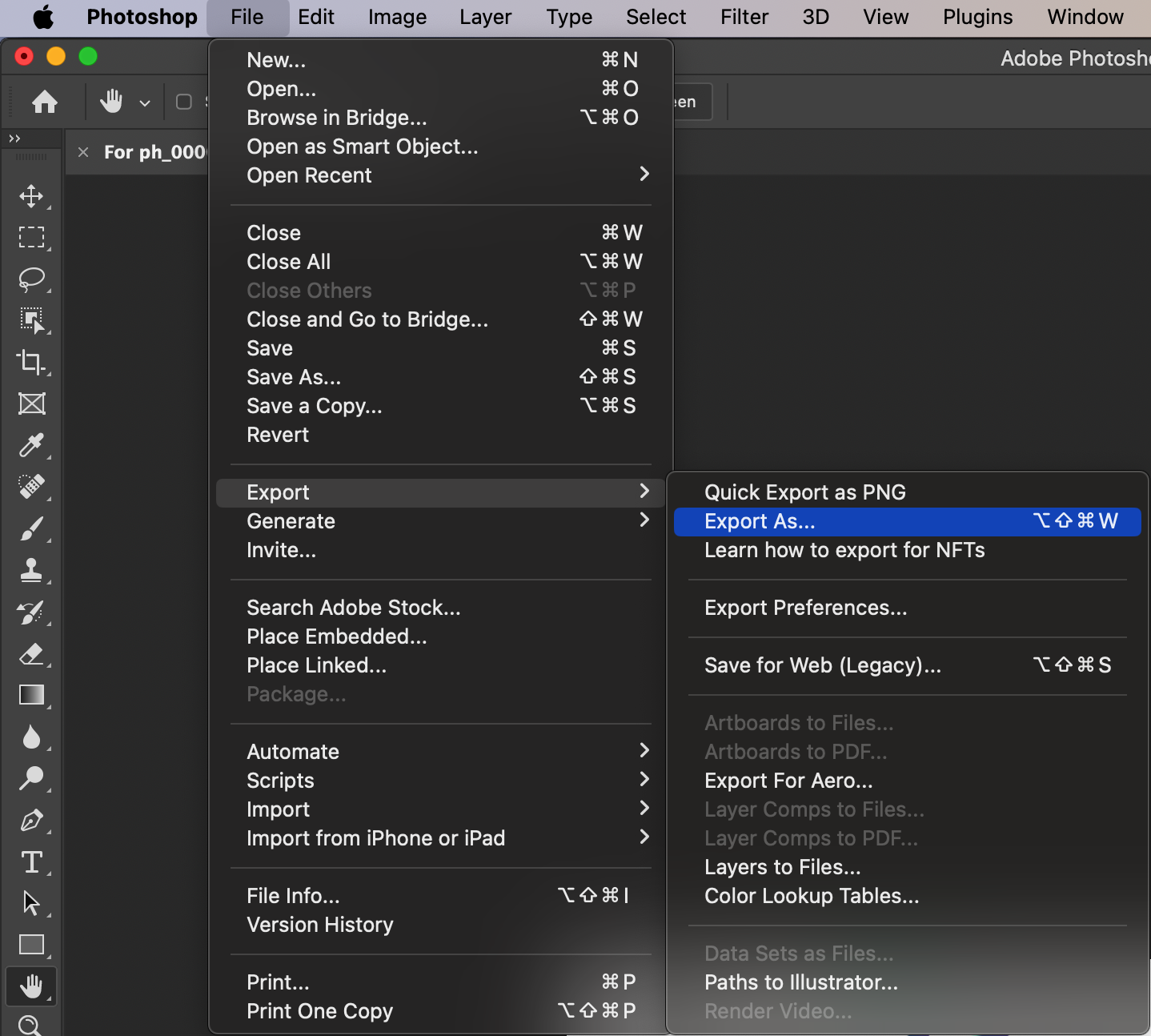 3. Open the After Effects File: Go to the “File” menu in Photoshop and select “Open.” Alternatively, use the hotkey “Ctrl/Cmd + O” to open the file dialog box.