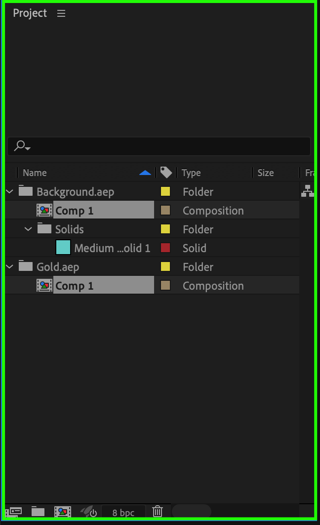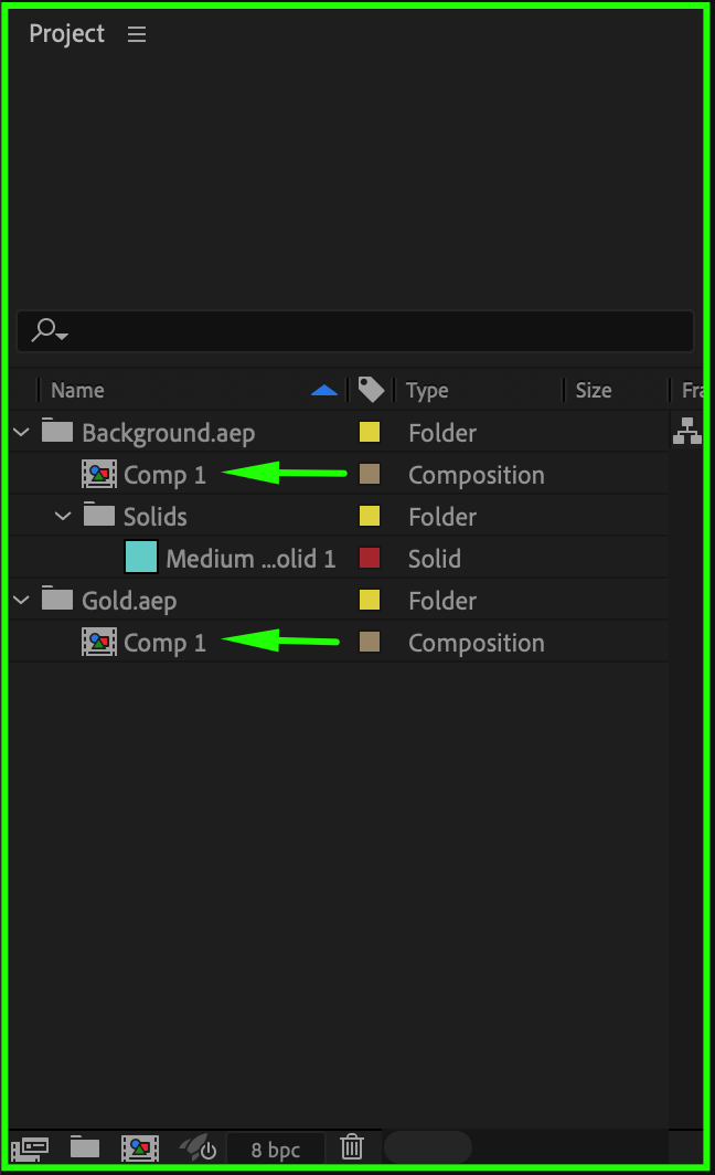 In the Project panel, expand the folders of the imported projects to find the compositions you want to work with. This step organizes your workspace, making locating and managing your compositions easier.