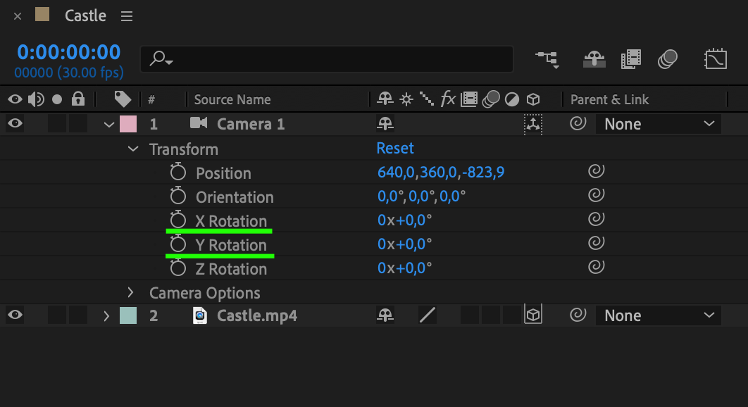 Expand the camera layer properties and find the parameters for X, Y, and Z rotation. In the “Timeline” panel, click on the arrow next to your camera layer to reveal its properties. Look for “Transform” and then “X Rotation”, “Y Rotation”, and “Z Rotation”.