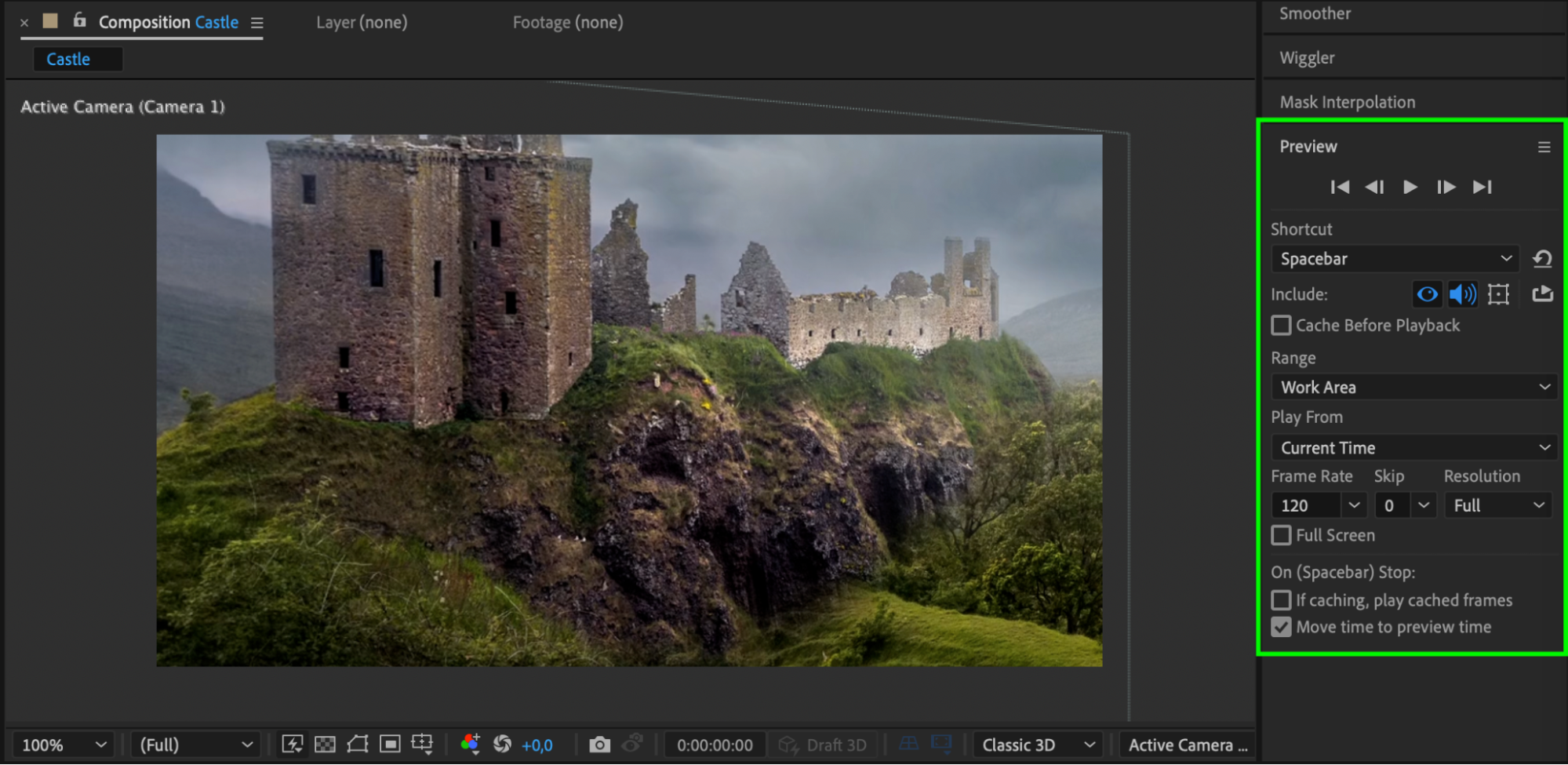 Finally, preview your composition to see the panning effect in action. Press the spacebar to play your composition and enjoy the smooth panning effect you’ve created.
