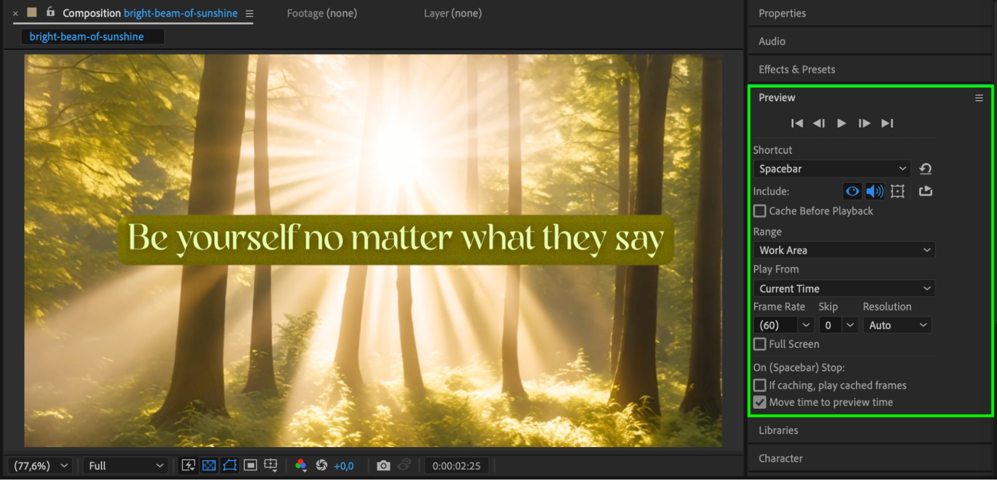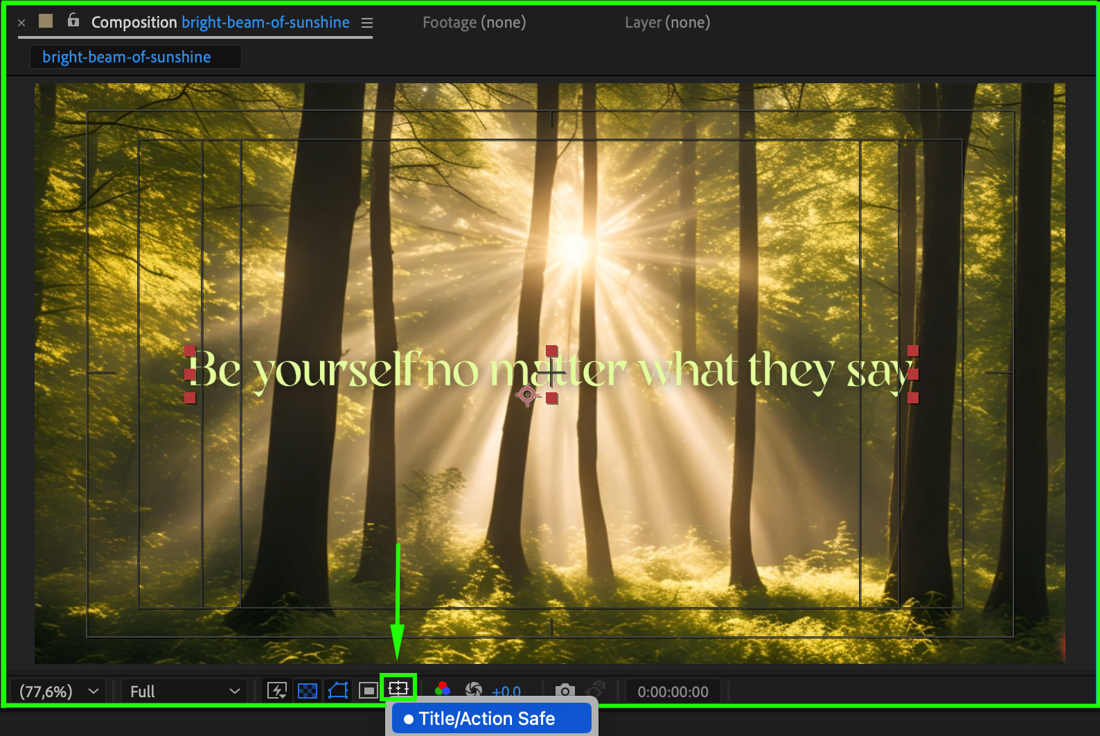 Press Spacebar to preview your composition. Check if the title stays in the correct area during the entire animation. Adjust text size, alignment, or anchor point if anything seems off.