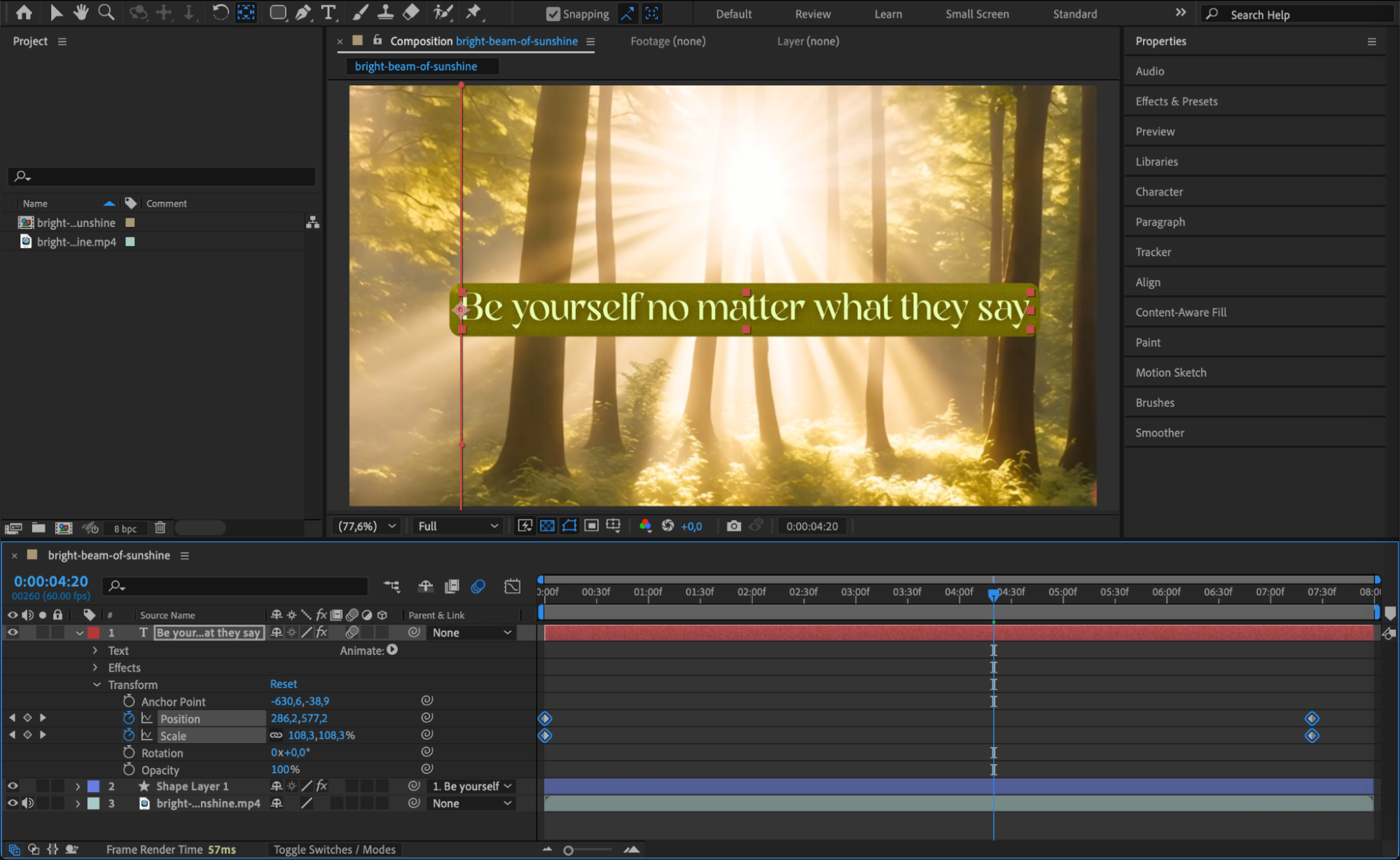 If you want your title to appear inside a fixed space — like a banner or window — you can draw a solid or shape layer as a background reference. This helps you visually define the boundaries for your text. You can also use a track matte to mask the title within a specific region if needed.