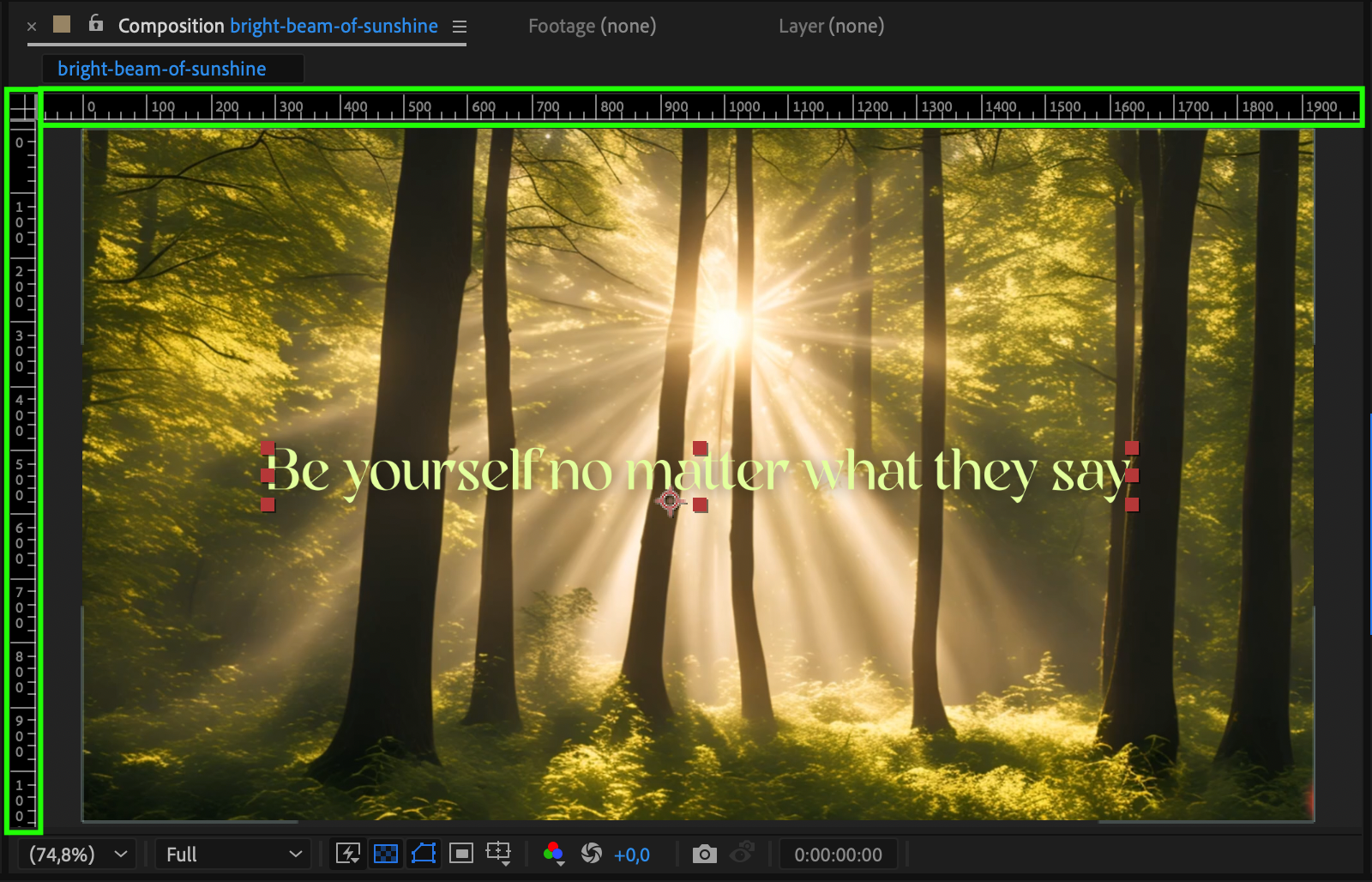 To place your title in a specific area, use guides by dragging from the rulers at the top and side of the Composition panel (enable rulers with Ctrl/Cmd + R). You can also turn on Title/Action Safe to keep your text inside TV-safe boundaries. Snap your title box to these guides for exact placement.