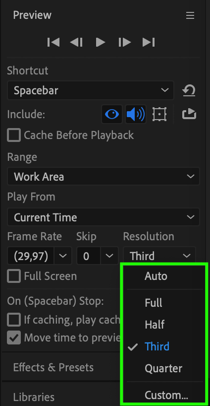 1. Reducing Preview Resolution:
