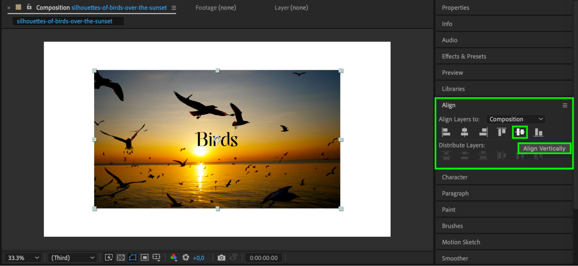 In the Align panel, you’ll see buttons for different alignment options, such as aligning layers to the left, center, right, top, middle, or bottom. Choose an option based on your layout needs. For instance, to center layers within the composition, click on the “Align Horizontally” and “Align Vertically” buttons. This ensures that your layers are perfectly aligned on the canvas.