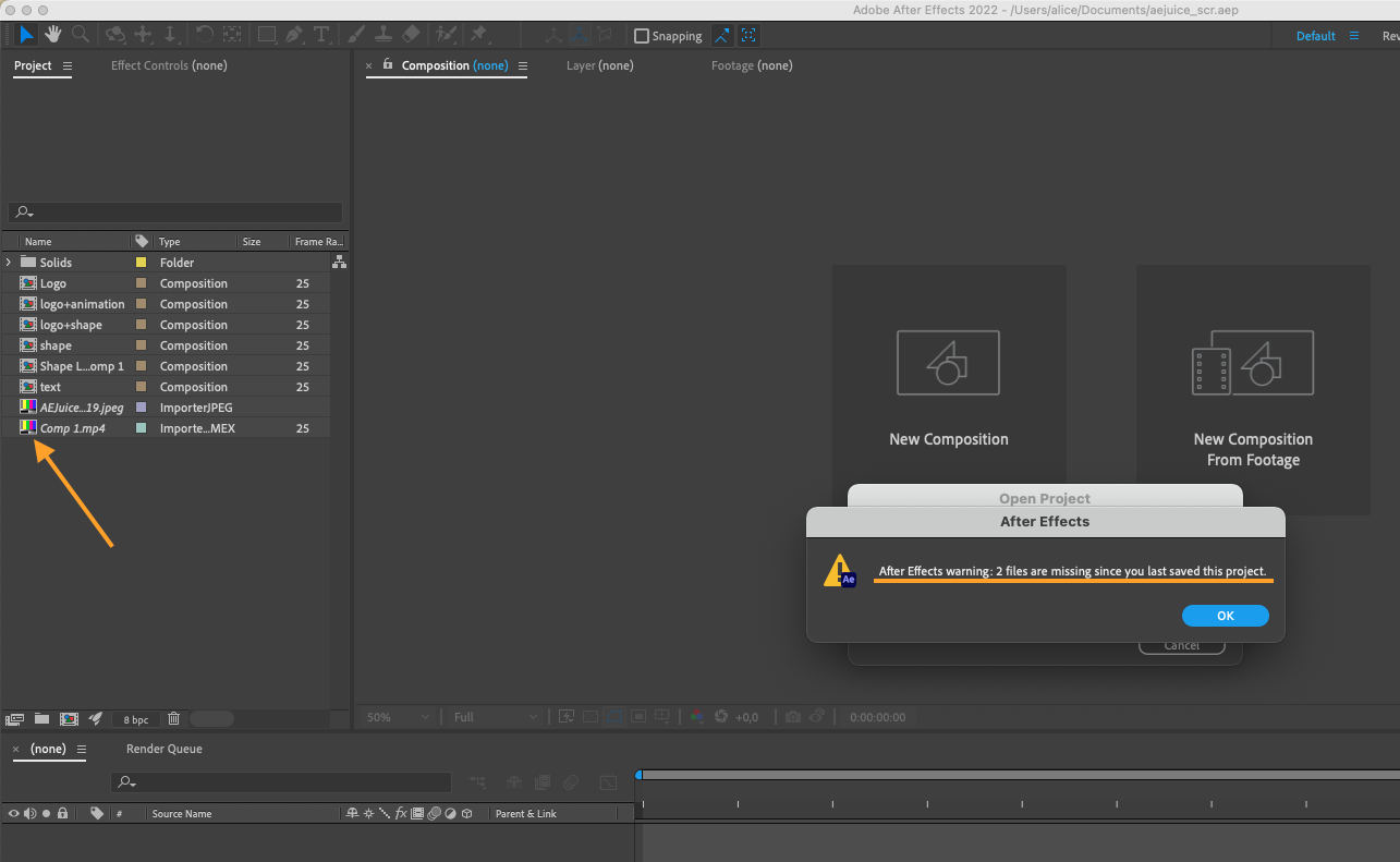 Start by identifying which files in your project are missing. After Effects will display a warning icon next to any missing files in the project panel. You can also check the “Effect Controls” panel for any missing assets used in your compositions.