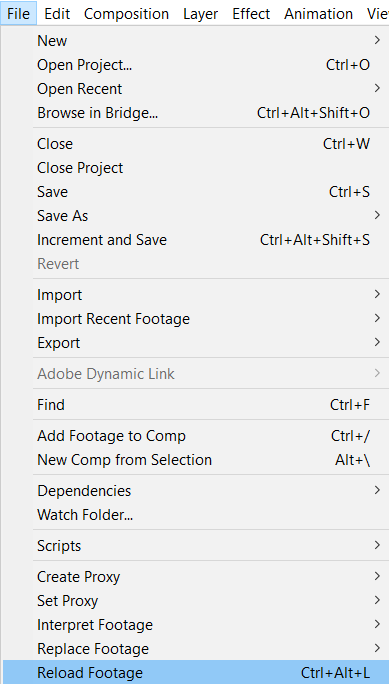 If a file in Adobe After Effects has been moved, deleted, or sent to the trash, and then restored, you can use the “Reload Footage” function to update the links in the project. Move the file back to its original location, open the project, select the restored file in the “Project” panel, right-click, and choose “Reload Footage” from the context menu or use “Ctrl/Cmd + Al/Option + L”. After completing these steps, your file will be updated in the project.