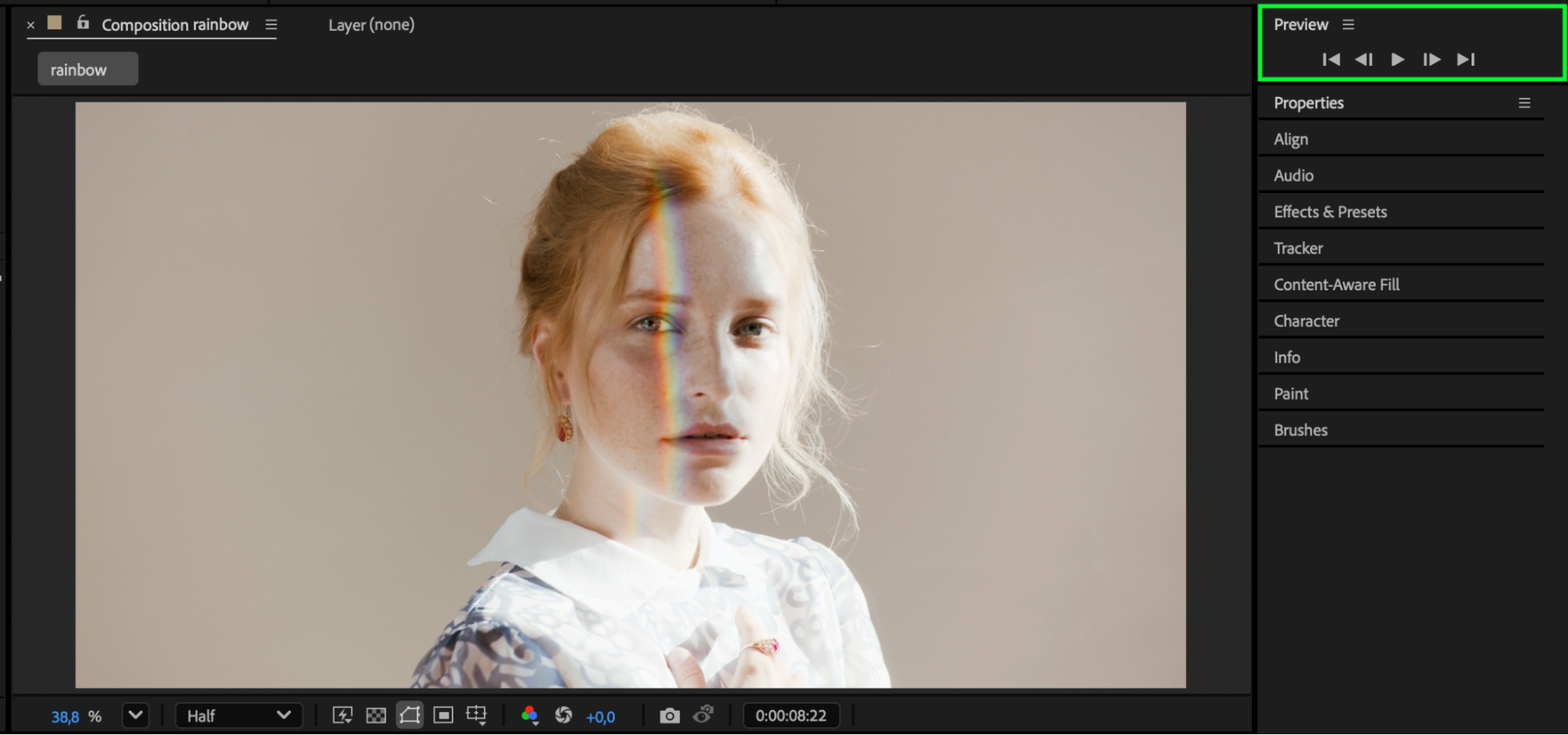 Press the Spacebar to preview your composition. Confirm that the mask is removed, disabled, or adjusted according to your needs.