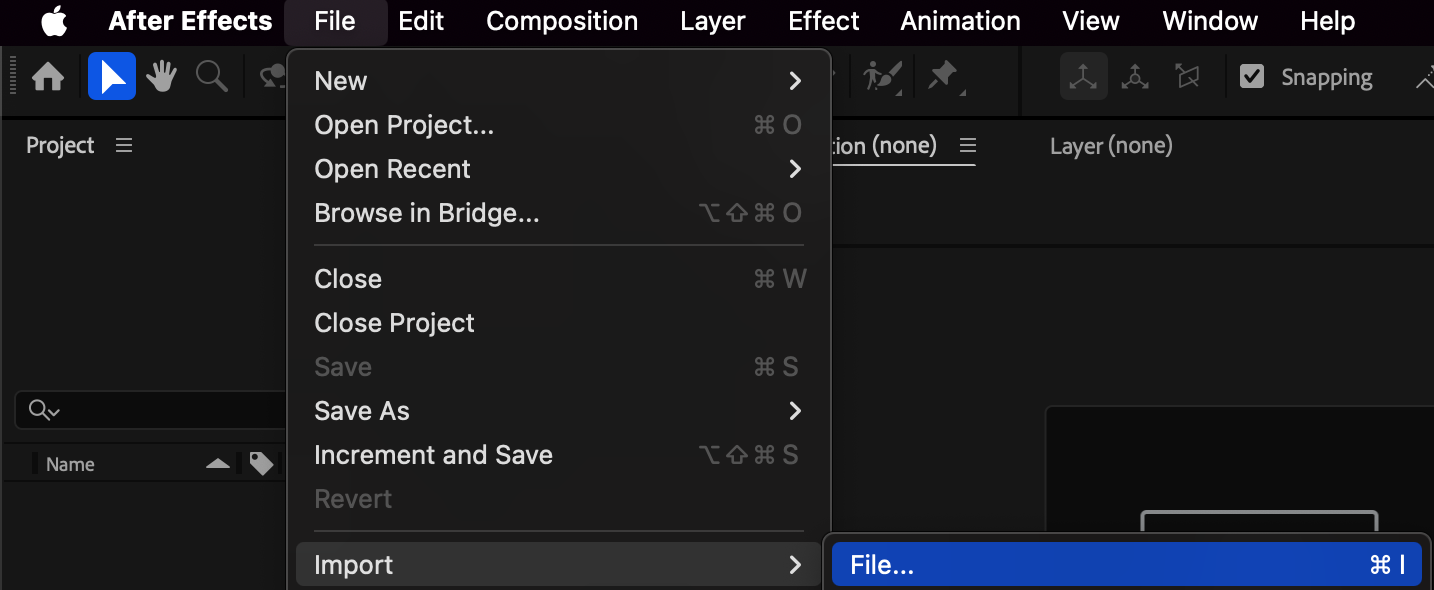 Go to File > Import > File, choose your media, and place it into your composition so the layer is ready for editing.