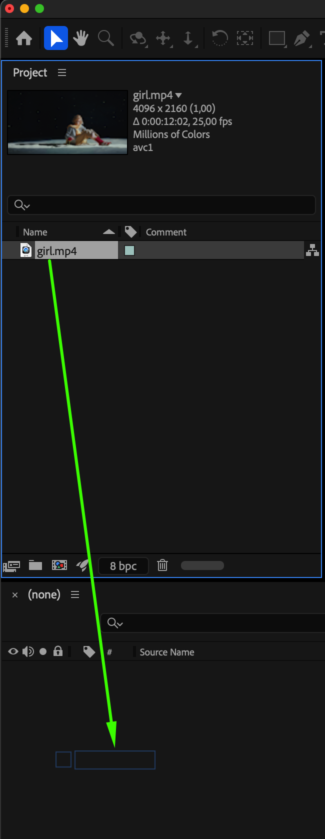 Go to File > Import > File, choose your media, and place it into your composition so the layer is ready for editing.